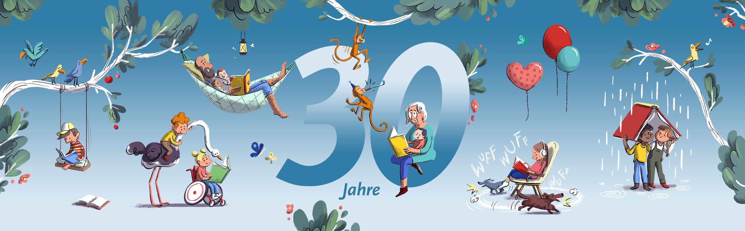30 Jahre – 2024 ist ein besonderes Jahr für den Kindermann Verlag, denn dieser feiert sein 30-jähriges Jubiläum. Am 14. Januar 1994 hat Verlegerin und Autorin Barbara Kindermann (1955 – 2020) den Kindermann in Berlin gegründet. Rund um das Jubiläum sind viele interessante Veranstaltungen geplant. 30 Jahre Kindermann Verlag - Mit diversen lesenden Menschen versehende Dreißig