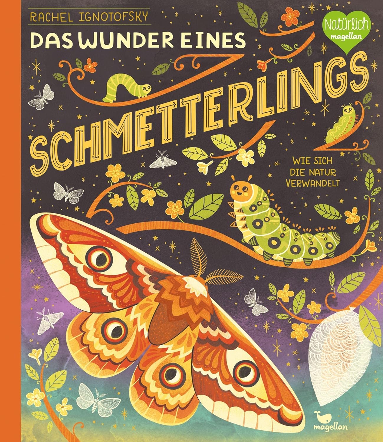 Wunderschön, faszinierend und farbenprächtig: In ihrem Sachbilderbuch „Das Wunder eines Schmetterlings – Wie sich die Natur verwandelt“* visualisiert Rachel Ignotofsky die spannenden Lebenszyklen und unglaublichen Fähigkeiten von Schmetterlingen. Sie erklärt Paarungsverhalten, Tarntechniken und deren Ernährung; immer im Kontext zu den Lebensräumen und der Umgebung, in der die Insekten leben. In einer ganz eindrucksvollen Kombination aus kurzen, informativen Texten, die spannendes Wissen vermitteln und wundervollen Illustrationen, die mit einer Pracht an Farben und Formen von Seite zu Seite schweben. Eine rundum anschauliche Einladung, diese phänomenalen Tiere näher zu kennenzulernen, und das unter viel Wertschätzung für die Artenvielfalt, die Schönheit und die Wunder der Natur.