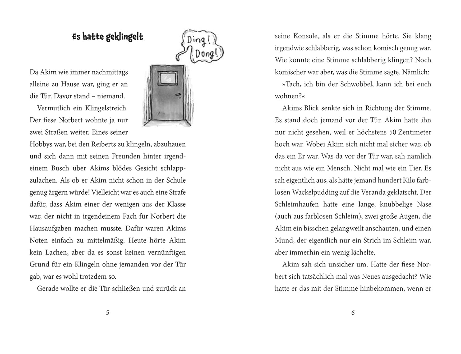Da staunt Akim nicht schlecht, als er vor seiner Haustür einen großen Berg Götterspeise mit Augen und einem freundlich lächelnden Mund entdeckt. Dieser farblose Schleimhaufen stellt sich ihm als Schwobbel vor und verkündet, dass er von nun an bei Akim wohnen wird. Und als er dann von ihm erfährt, dass ausgerechnet er den Schwobbel von einem Hexenfluch befreien kann, beschließt Akim es zu versuchen: „Der Schwobbel – Ein Schleim zieht ein“…