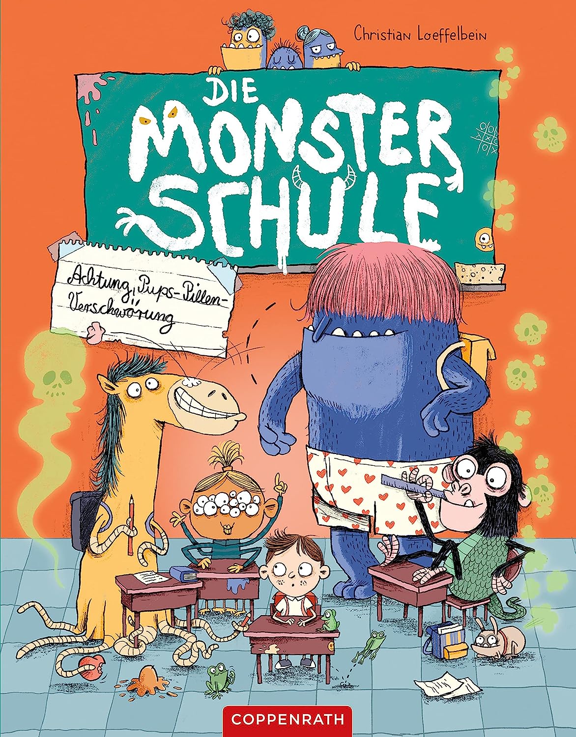 Bei „Die Monsterschule: Achtung, Pups-Pillen-Verschwörung“* ist der Name buchstäblich Programm – unheimlich viele Pupse, Flatulenzen, Stinkwolken und Blähungen lässt Christian Loeffelbein über die Seiten fliegen und knattern. Eine Kunst dabei eine Leichtigkeitsbalance zu bewahren und sich nicht in fürchterlichem Fäkalhumor zu verlieren. Doch das gelingt ihm ziemlich gut, vor allem dank der lustig-schrägen Story, in die alles eingebunden ist. Neben dem ungeheuerlich witzigen Wortspielereien sind auch die schaurig-schönen Illustrationen von Nikolai Renger ein echt fantastisches Highlight, die den Text auf besondere Weise ergänzen. Wer monsterstarke Geschichten mag und nichts gegen ein wenig blubsende Windmalheure einzuwenden hat, sollte mal reinschnuppern…