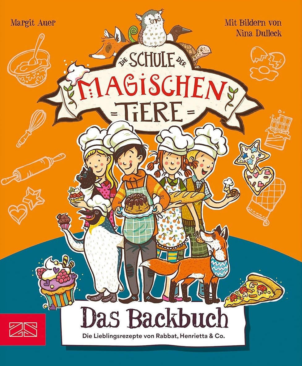 Willkommen in der magischen Backschule: Und in „Die Schule der magischen Tiere – Das Backbuch“* geht im wahrsten Sinne des Wortes heiß her – hier können mit Ida Erdbeer-Cupcakes, mit Peperoni Schokiwürfel, mit Rabbat Schneewittchenkuchen, mit Rick Vanille-Whoopies, mit Karajan Pain au chocolat, mit Eugenia Spinnennetz-Torte, mit Caspar Pizzatoast, mit Cooper englische Scones, mit Benni Kokosmakronen, mit Mette-Maja Blitz-Brötchen sowie mit Jo und Juri Vollkornbrot gebacken werden. Von Eule Muriel gibt es außerdem eine Menge Infos zu den wichtigsten Backzutaten und Schildkröte Henrietta hat viele praktische Tipps, um all die leckeren Köstlichkeiten zaubern zu können