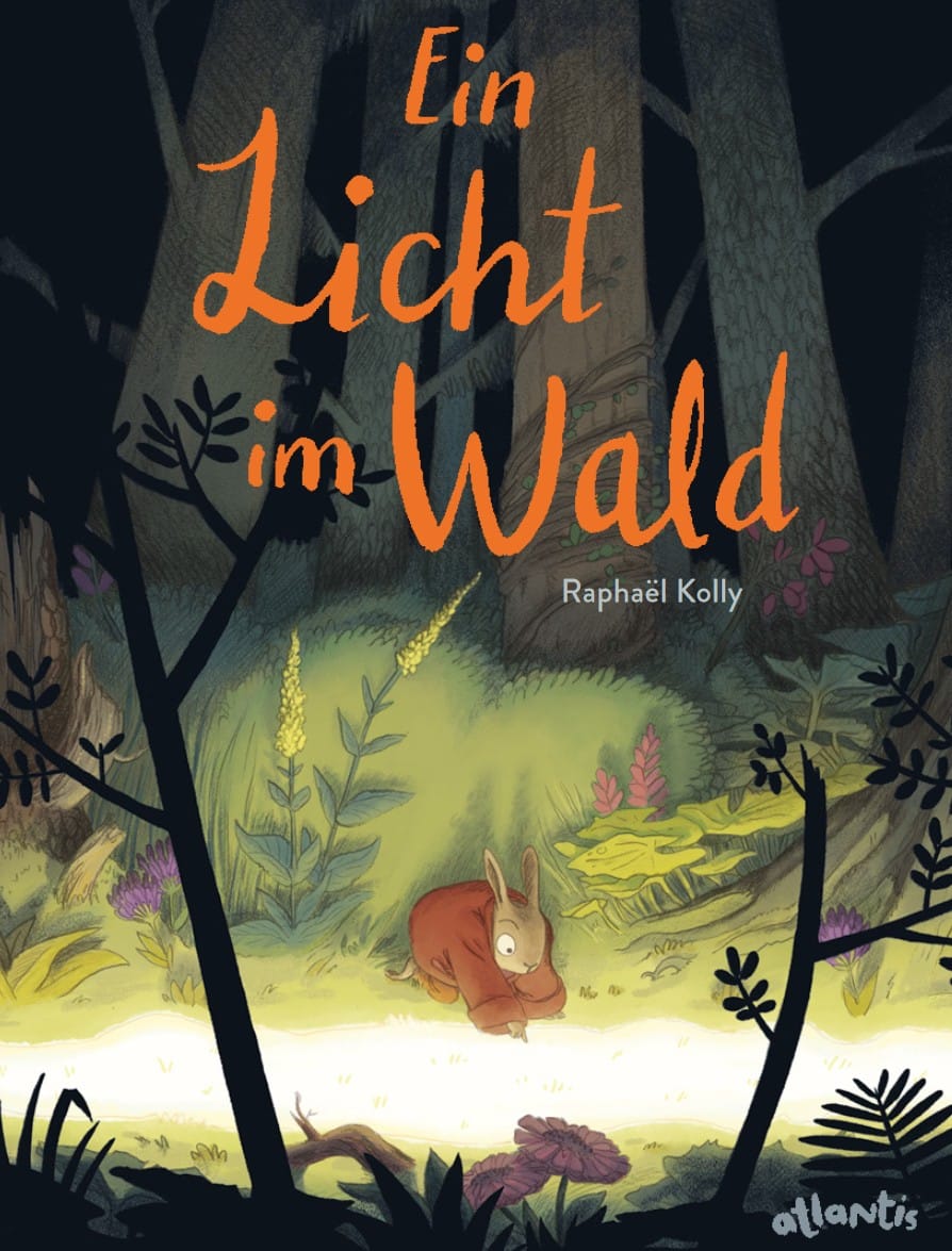 Kaninchen hüpft den ganzen Tag munter umher. Es spielt, entdeckt und wandert. So auch in den Wald hinein. Dort wird es plötzlich von der Dunkelheit überrascht. Alles ist schwarz. Kaninchen ist allein und findet den Weg nicht mehr. Da sieht es ein Leuchten: „Ein Licht im Wald“, das die Sonne zurückgelassen hat – aber nicht nur Kaninchen kann das kostbare Licht gut gebrauchen…