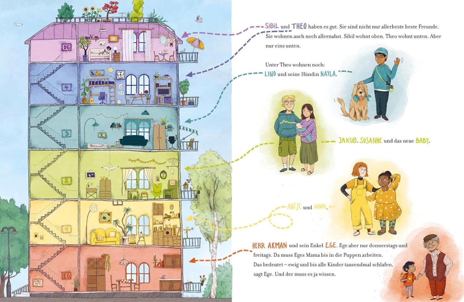 Was für ein großes Glück – Theo und Sibil sind nicht nur beste Freunde, sondern auch Nachbarn. Sie wohnen im gleichen Mehrfamilienhaus, und wenn Theo mit Sibil spielen möchte, dann klingelt er an einfach an ihrer Tür. Gemeinsam erleben sie dort viele Abenteuer, doch dabei geht es manchmal auch ziemlich drunter und drüber. Ein richtiges Chaos. Und manchmal hilft dann eine „Entschuldigung“…