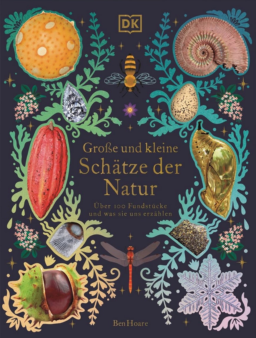 Unterteilt in die Gruppen „Tiere“, „Pflanzen, Pilze und Algen“, „Mineralien und Gesteine“ sowie „Natürliche Gebilde“ geht es mit „Große und kleine Schätze der Natur“* von Ben Hoare auf eine unglaubliche, faszinierende und beeindruckende Entdeckungsreise in die Naturwelt. Über 100 Objekte – vom Achat über Lamellen bis hin zur Zikadenhaut – werden mit spannenden Fakten, bemerkenswerten Hintergrundinformationen, detaillierten Nahaufnahmen, wunderschönen Illustrationen und informativen Diagrammen vorgestellt.
