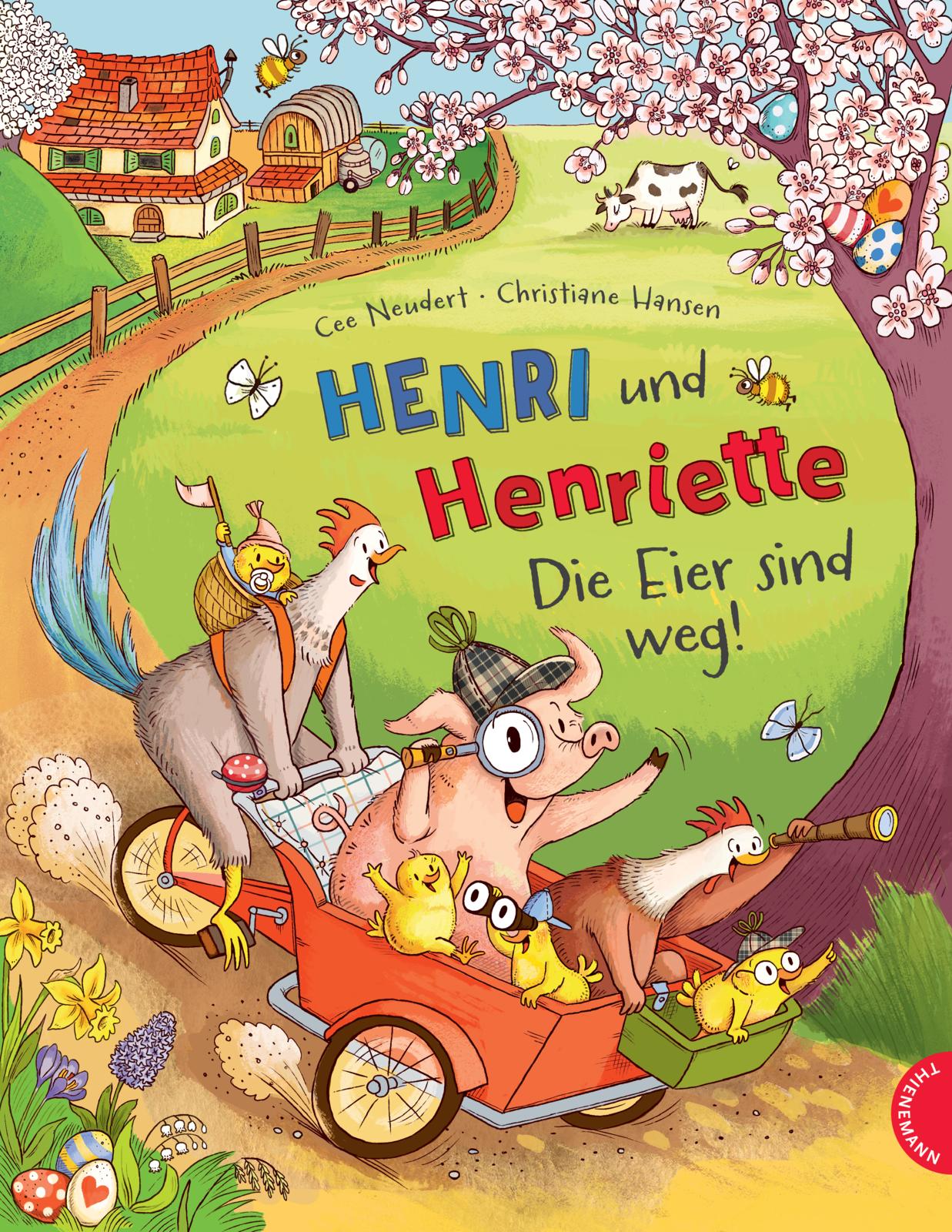 In „Henri und Henriette: Die Eier sind weg!“* von Cee Neudert versteckt sich eine turbulente wie vergnügliche Mischung aus Bauernhofgeschichte, Roadmovie und Detektivabenteuer. Fantasievoll, rasant, herzig und gleichzeitig mit kleinen, spannenden Wissenshäppchen gespickt. Eingebunden in eine kunterbunte Bilderwelt. Christiane Hansens Illustrationen laden einerseits zum Verweilen ein und regen doch auch gleichzeitig zum Erzählen an. So viele und vor allem lustige Details, die erst beim mehrmaligen Lesen so richtig zu entdecken sind. Rundum ein schwungvoller Bilderbuchspaß, der heiter den Zauber des Frühlings zelebriert sowie die Vorfreude auf das Osterfest beflügelt.