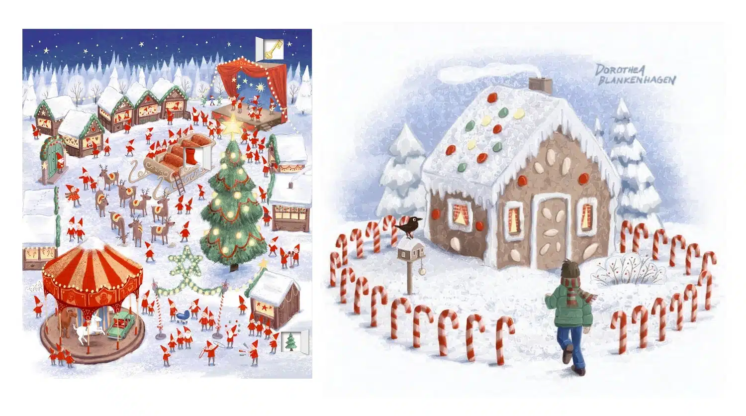 In 24 (ungeordneten) Kapiteln nimmt Susan Niessen mit zu einem märchenhaften Suchabenteuer, bei dem nicht nur allerlei magische Wesen, sondern auch bekannte Persönlichkeiten der Adventszeit für Überraschungsmomente und unterhaltsame Wendungen sorgen. Damit die Geschichte rund um die Geschwister „Im verwunschenen Weihnachtswald“* weitergelesen werden kann, gilt es immer eine Suchaufgabe zu lösen. In der winterlichen Waldlandschaft, die der Feder von Dorothea Blankenhagen entsprungen ist, finden sich hinweisende Symbole sowie warmherzige Details. Zum Träumen schön. Vom 1. Dezember an eine stimmungsvoll-rätselzauberhafte Begleitung durch die Vorweihnachtszeit.
