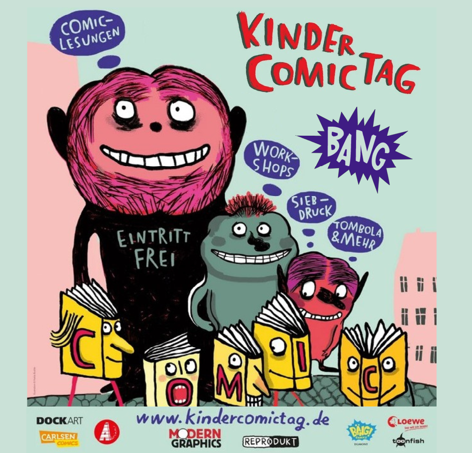 2023 steht der 3. September ganz im Zeichen des Kindercomics: Den Kinder Comic Tag feiern die Tanzschule Dock 11 und die Comic-Verlage Carlsen Comics, Egmont Bäng, Loewe, Splitter, Adrian Verlag, Reprodukt und der Comicshop Modern Graphics mit vielen Lesungen sowie einem bunten Programm. Mehr dazu erfahrt ihr unter https://kindercomictag.de/.