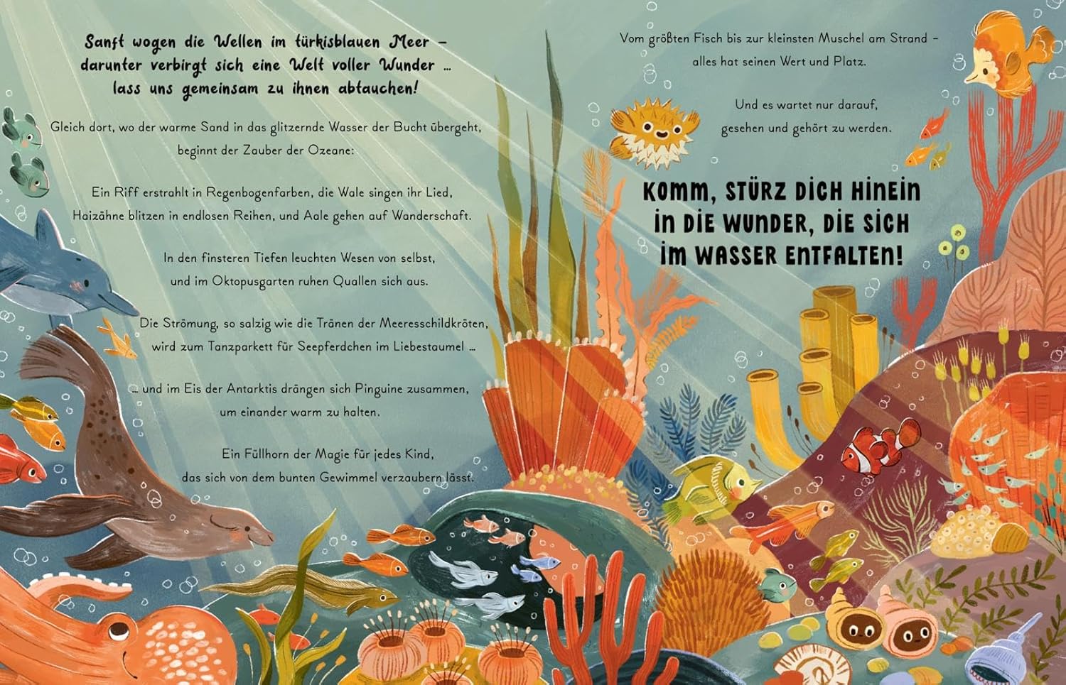 Von der Zeitreise der unsterblichen Qualle über die geheimnisvolle Wanderung der Aale bis hin zu Oktopussen, die ihre Gestalt wandeln können: Die Vorlesegeschichten in „Kleine und große Wunder der Meere“ lassen in die faszinierende Welt unter der Meeresoberfläche eintauchen. Ein Ort voller Magie – lebendig, geheimnisvoll und wunderschön…