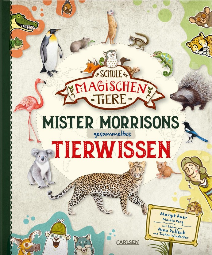 In „Die Schule der magischen Tiere: Mister Morrisons gesammeltes Tierwissen“* von Margit Auer und Martin Verg liegt ein fabelhaftes Leseerlebnis vor euch. Von B wie Biber über L wie Leopard bis hin zu W wie Wolf werden 29 Tiere – bekannt aus „Die Schule der magischen Tiere“ – auf je drei Doppelseiten vorgestellt. Charmant, informativ und unterhaltsam gibt es Wissenswertes zu Aussehen, Ernährung, Lebensweise, Nahrung sowie zum geografischen Lebensraum.