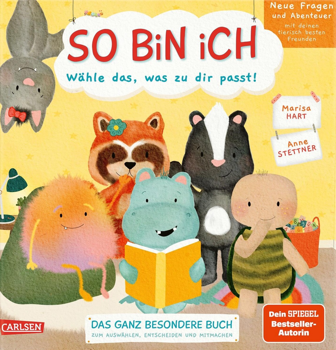 Kinder haben Bedürfnisse und Wünsche, sie wollen Dinge selbst tun und in Entscheidungsprozesse einbezogen werden. Genau da setzt die „So bin ich“*-Buchreihe von Marisa Hart und Anne Stettner an. Auch mit Band 2 „So bin ich – Neue Fragen und Abenteuer“* bieten sie begleitet von tierisch niedlichen Figuren wundervolle Impulse zum Auswählen, Entscheiden und Mitmachen. Seite für Seite stehen Möglichkeiten, Fragen, Dinge oder Situationen – von Freizeitaktivitäten über die Brotdose für den Kindergraten bis hin zu Zeitreisen – zur Auswahl; unterteilt in die einzelnen Kapitel „Schildkröte Soraya: Gefühle und Emotionen“, „Katzenbär Kasimir: „Den Alltag erleben“, „Fledermaus Frieda: Die Welt entdecken“, „Stinktier Smilla: Zusammen Quatsch machen“, „Fantasietier Knut: Sich verrückte Dinge vorstellen“ und „Nilpferd Nils: Essen und Trinken“. Eine fantasievolle, spielerische, interaktive und charmante Navigation durch die Welt des Bauchgefühls, der Empfindungen, Sinneseindrücke und Entscheidungen.