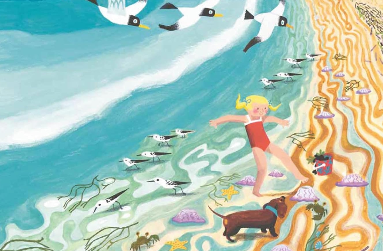 In „Unser Tag am Meer“* nimmt Noëlle Smit mit zu einem Bilderbuchausflug an das Meer an einem schönen Sommertag. Begleitet von nur wenigen Worten, aber dafür mit umso mehr eindrucksvollen Illustrationen; die gefühlt das Rauschen der Wellen hören sowie den Sand unter den Füßen spüren lassen. Tierische Highlight gibt es auch eine Menge; wie die Möwen, die Seesterne, die Krabbe und auch Hund Tom, bekannt aus dem Buch „Hallo, Teckel Tom!“*, die auf jeder Seite zu entdecken sind. Warm, sonnig, entspannend, leuchtend und atmosphärisch. Wunderbar zur Vorbereitung auf einen Tag am Strand oder auch zum Mitnehmen an diesen.