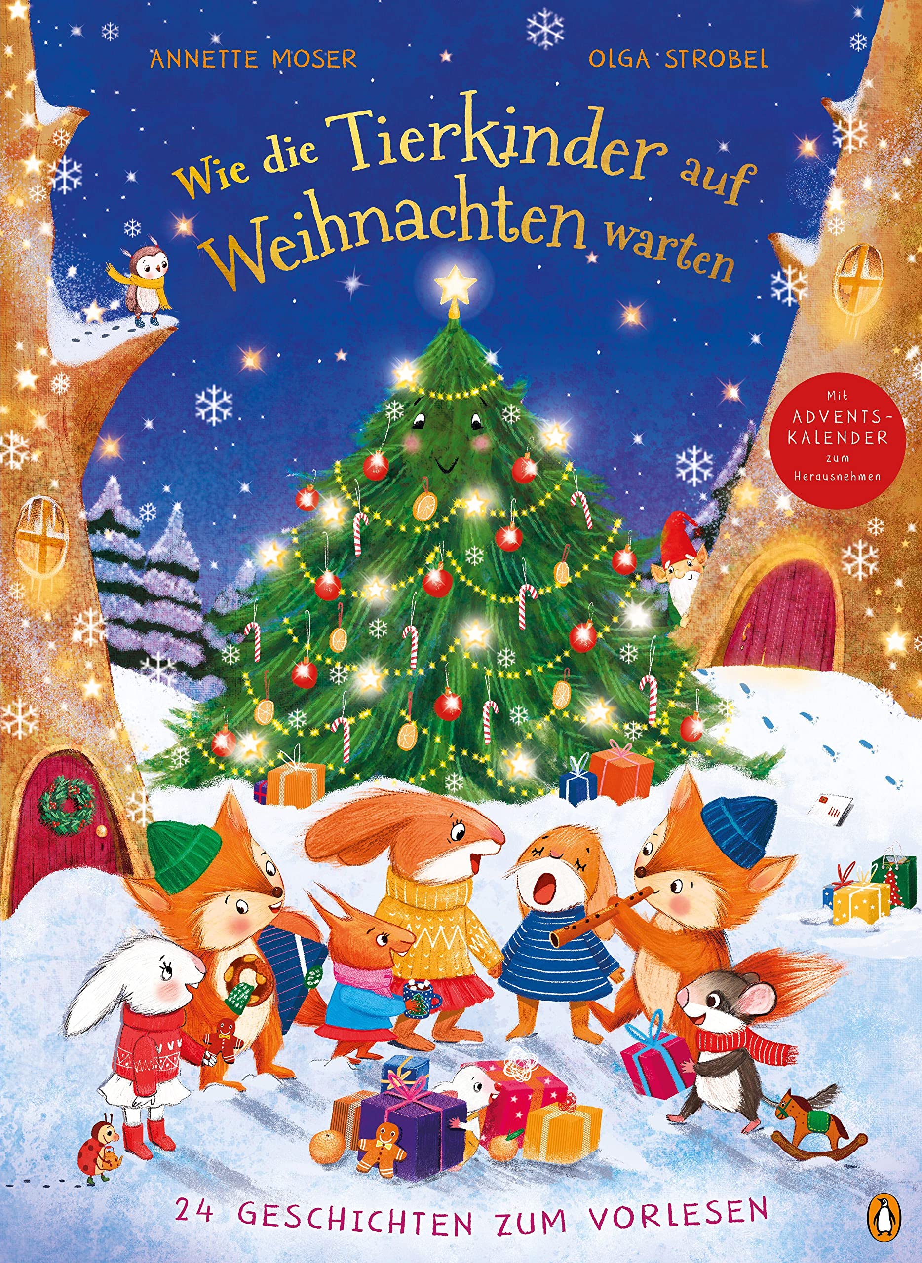Im großformatigen Pappbilderbuch „Wie die Tierkinder auf Weihnachten warten“* von Annette Moser sind nicht nur 24 Vorlesegeschichten enthalten, sondern auch ein Adventskalender zum Herausnehmen und Aufhängen, hinter dessen Türchen weitere zauberhafte Überraschungen warten. Weihnachtlich stimmungsvoll von Olga Strobel mit viel Liebe zum Detail gestaltet. Wunderbar die Wartezeit aufs Fest verkürzend und auf Weihnachten einstimmend.