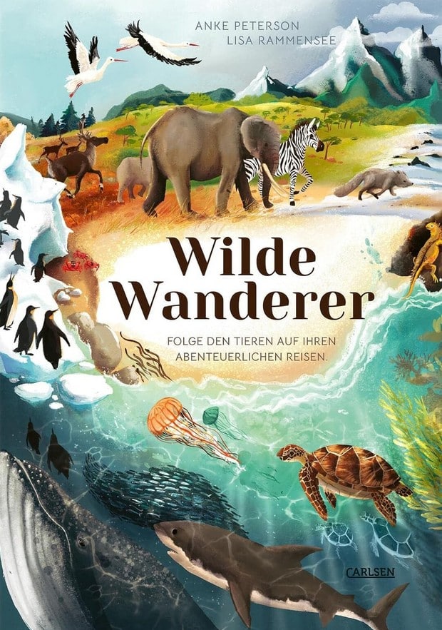 Ob als Massenbewegung oder als Tagesausflug: Tierwanderungen und -migrationen sind eines der erstaunlichsten Phänomene der Natur. Ob in windigen Lüften oder im ewigen Eis, in den Tiefen der Ozeane oder in den Weiten der Savanne, mit Gesang oder mit Anschluss – überall auf der Welt sind Tiere unterwegs. In „Wilde Wanderer: Folge den Tieren auf ihren abenteuerlichen Reisen“* stellt Anke Peterson die Reiserouten von über 20 Tieren, darunter Vögel, Säugetiere, Fische, Reptilien und Insekten – vor. In einer spannenden sowie unterhaltsamen Kombination aus informativen Texten und individuellen Tierporträts. Dazu gesellen sich die unglaublich schönen Bilder von Lisa Rammensee, die mitten hinein ins das tierische Geschehen ziehen. Rundum spektakulär und eindrucksvoll.
