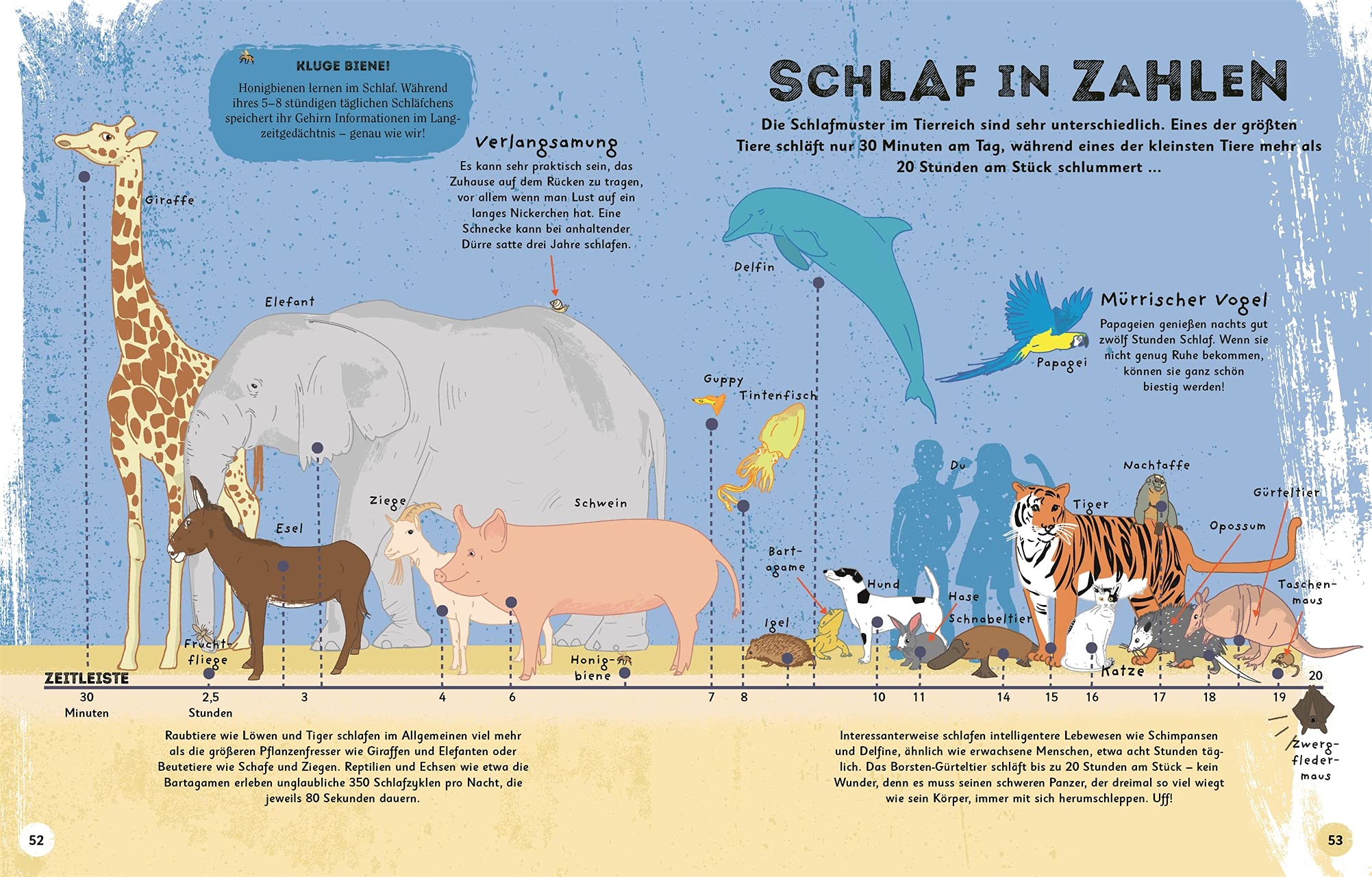 Schlafen ist eine Notwendigkeit. Er hilft unserem Körper dabei, sich zu erholen. Fördert unser Gehirn beim Lernen oder Lösen von Aufgaben. Außerdem reguliert der Schlaf unser Körpergewicht, steigert die Kreativität und stärkt unsere Abwehrkräfte. Aber was passiert eigentlich genau, wenn wir schlummern? Das erfahrt ihr in: „Alles übers Schlafen: Warum wir träumen, wie Tiere schlafen und wie wir richtig müde werden“…