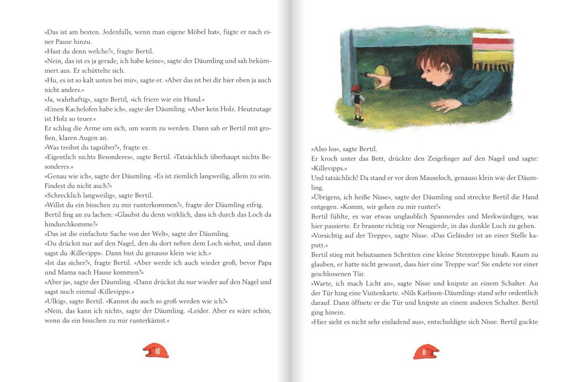Bertils Eltern arbeiten viel. So ist er oft den ganzen Tag allein zu Hause und langweilt sich. Bis er eines Abends trippelnde Schritte unter dem Bett hört. Dort entdeckt er einen kleinen Jungen, der nicht größer als ein Daumen ist: Nils Karlsson-Däumling. Der verrät Bertil, dass auch er so klein wie ein Daumen wird, wenn er auf den Nagel neben dem Mauseloch unter dem Bett drückt und das Zauberwort „Killevipps“ sagt. Von da an ist es vorbei mit der Langeweile…