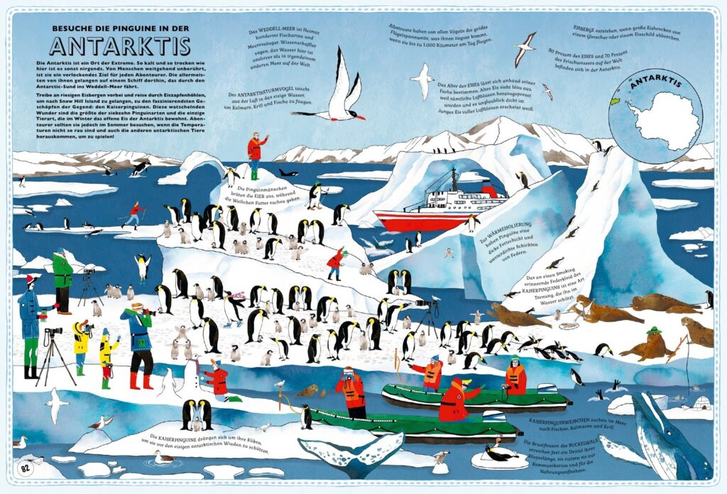 Europa, Nordamerika, Mittel- und Südamerika, Asien und Naher Osten, Afrika, Australien und Ozeanien und die Antarktis: Im Atlas der Abenteuer geht es einmal rund um die Welt. Ob Tiere, Menschen oder Besonderheiten – alles ist einzigartig und so voller Vielfalt. Hier gibt es überall etwas zu entdecken: