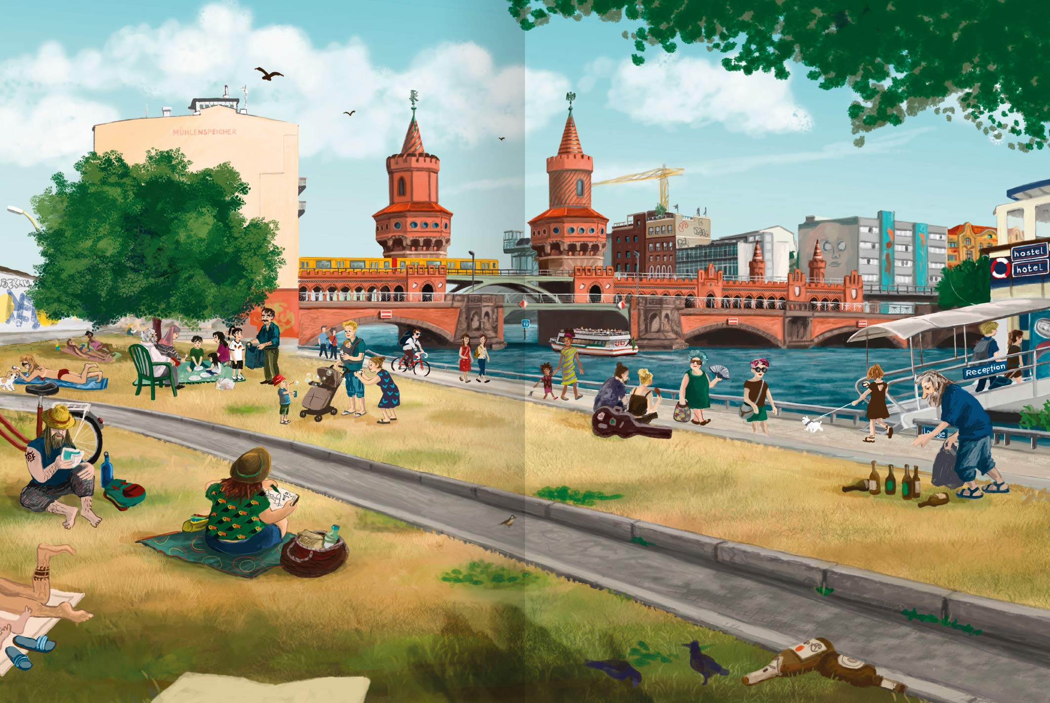Die jeweiligen Doppelseiten kommen ganz ohne Text aus. Erklärungen und Einzelheiten zu den abgebildeten Szenen finden sich am Ende des Buches. Lustige Situationen, außergewöhnliche Gegenden und kleine Kuriositäten laden zum Staunen, Entdecken und Träumen ein. Und wer nicht gleich errät, wo man sich gerade befindet, dem helfen kleine Hinweise weiter. Eine Liebeserklärung, außergewöhnlich in Szene gesetzt.