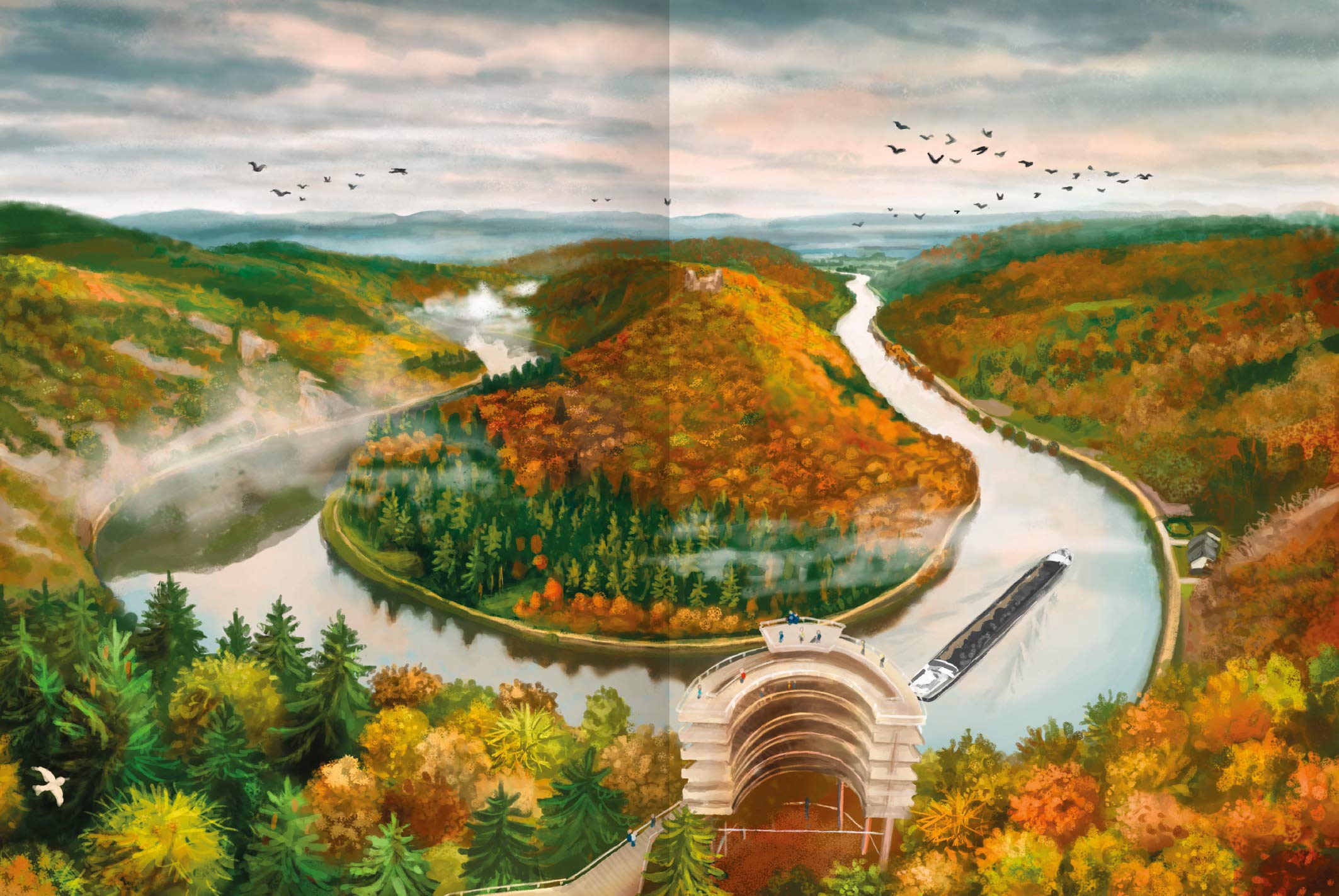 Die Saarschleife ist eine der schönsten Flusslandschaften Deutschlands. In einer beeindruckenden Kurve schlängelt sich die Saar durch eine tiefe Schlucht, auf die man vom Baumwipfelpfad einen großartigen Ausblick hat.