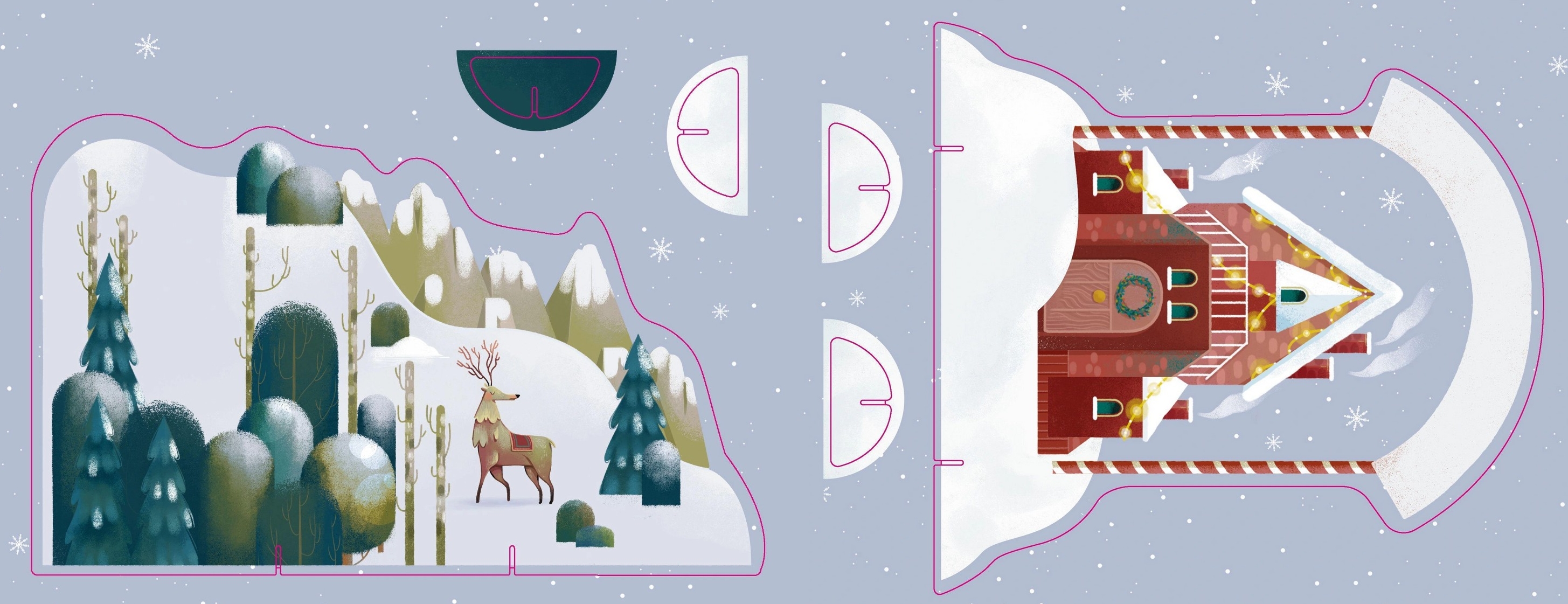 In der Spielbox „Deine zauberhafte Weihnachtsnacht: Zum Lesen und Spielen“* befinden sich neben dem Pappbilderbuch mit der Geschichte des kleinen Wichtels 15 Bögen mit Figuren und Kulissen zum Herausnehmen, um das Dorf des Weihnachtsmannes aufzubauen. Und das ganz ohne Schere oder Kleber. Mit den Elfen, Rentieren, Schneemännern, Bäumen, Geschenken und Gebäuden kann die weihnachtliche Geschichte nachgespielt oder auch eigene Weihnachtsgeschichten erfunden werden. Ein wunderschönes Weihnachtsszenario rundum die magischste Nacht des Jahres.