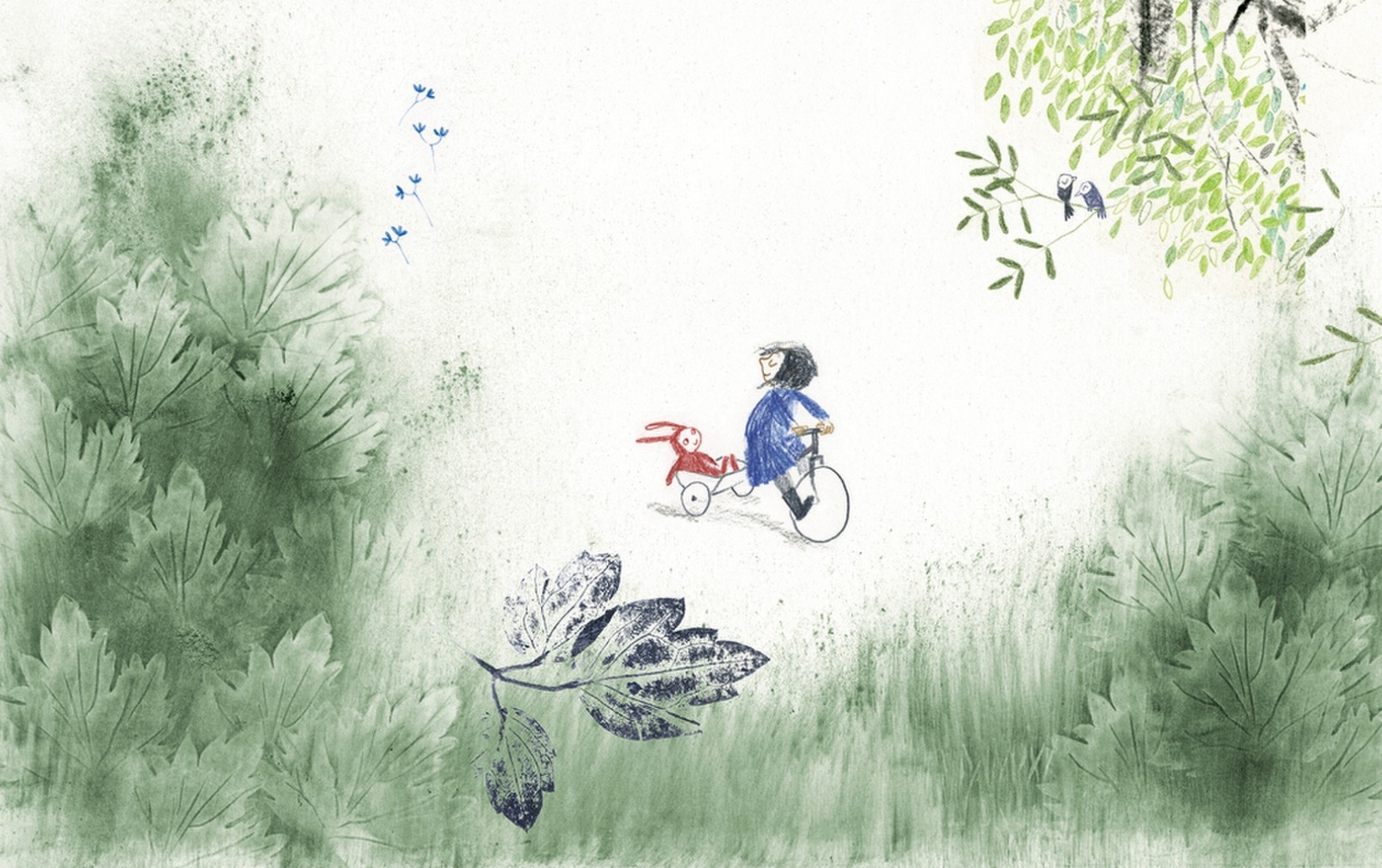 Irgendwann jedoch ist er genug gewandert und hat genug gegrübelt, über das was nicht ist. Irgendwo auf einer Wiese legt er sich hin. Dort denkt er an rein gar nichts. Er spürt die Morgensonne in seinem Gesicht und das Gras unter sich. Hört die Vögel tschilpen, den fernen Lärm der Autos, das Rollen von Kinderwagen und Laufrädern. Einfach nur dazuliegen, unter der Sonne, das fühlt sich vollkommen wunderbar an. Und plötzlich wird er hochgehoben und liegt in den Armen eines kleinen Mädchens. Und der kleine Hase traut seinen Ohren nicht, als er es etwas sagen hört…