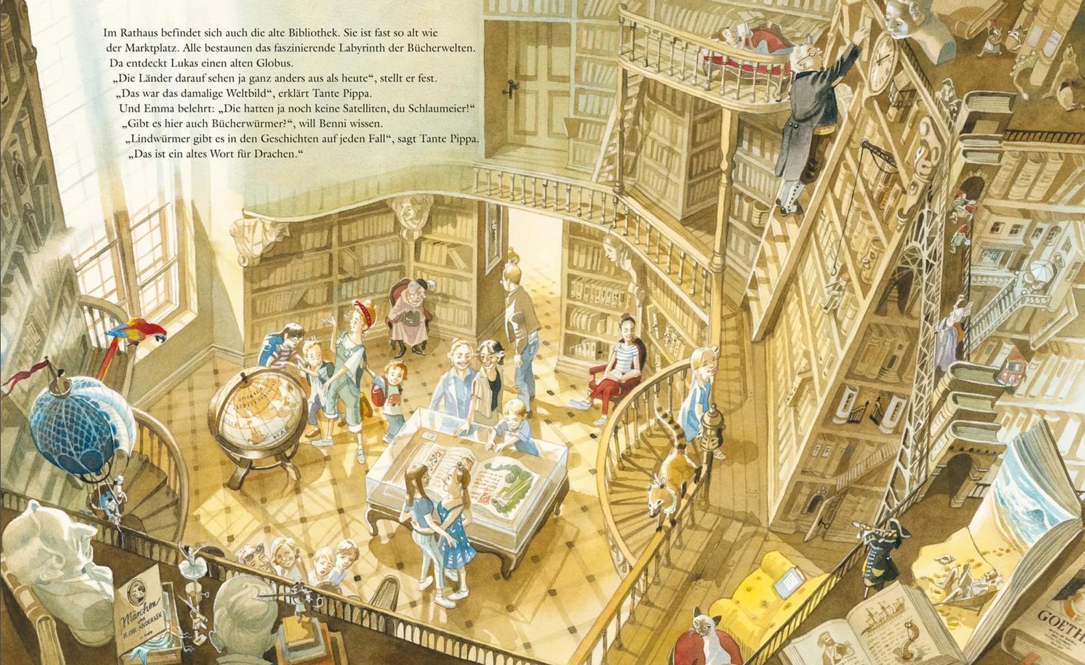 Lustige Situationen wie Kängurus in der Opernloge oder sonnenbadende Ameisen im Spielplatzsand, die Liebe zum Detail, das Einflechten von bekannten Buchfiguren wie Nils Holgersson oder das weiße Kaninchen aus Alice im Wunderland und die vielen kleinen Suchaufgaben machen diese Wunderwimmelbilderwelten zu etwas ganz Besonderen.