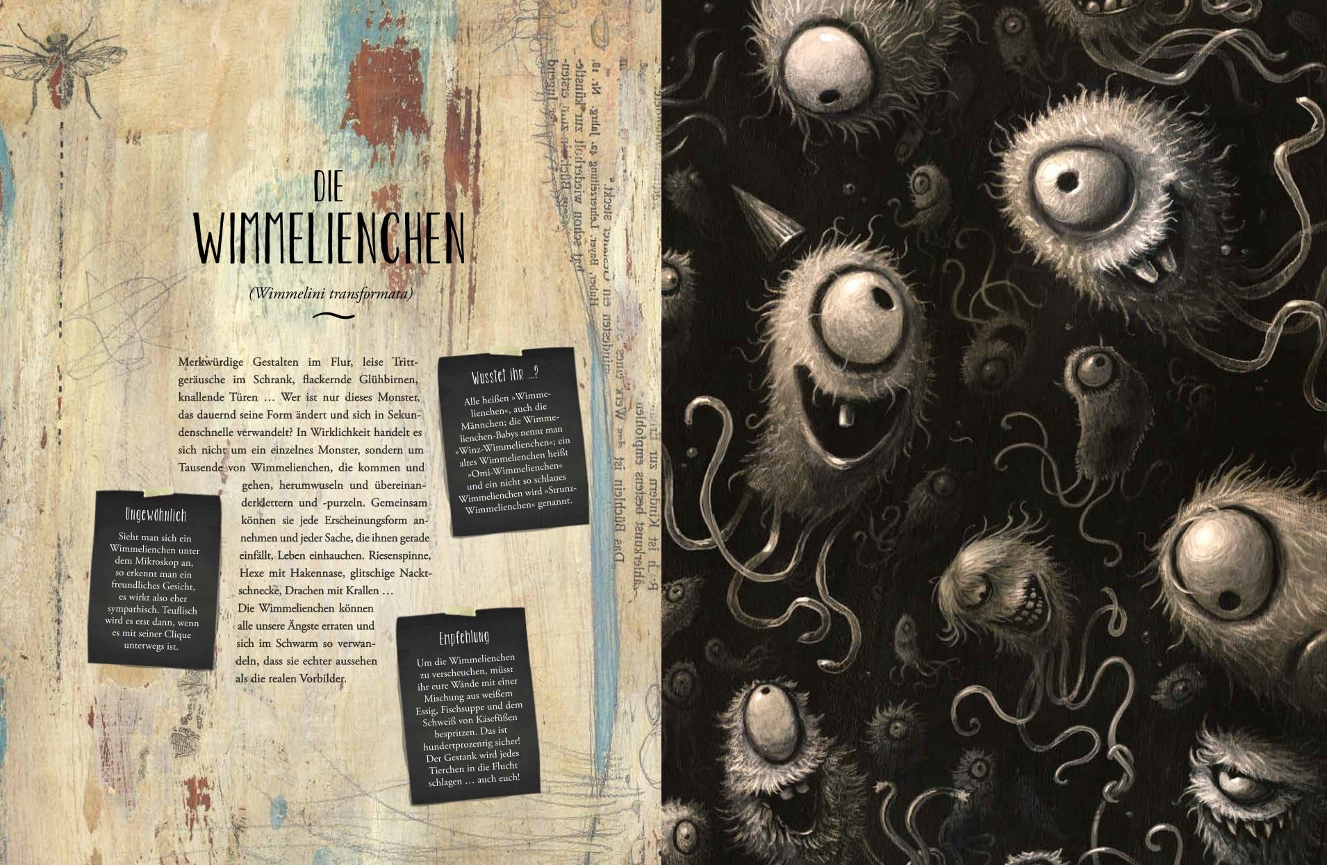 Merkwürdige Gestalten im Flur, leise Trittgeräusche im Schrank, flackernde Glühbirnen oder knallende Türen – hierbei handelt es sich nicht um ein Monster, sondern um Tausende von Wimmelienchen, die kommen und gehen, herumwuseln und übereinanderklettern und -purzeln. Gemeinsam können sie jede Erscheinungsform annehmen und jeder Sache, die ihnen gerade einfällt, Leben einhauchen wie beispielsweise einer Riesenspinne, einer Nacktschnecke oder ein Drachen mit Krallen…