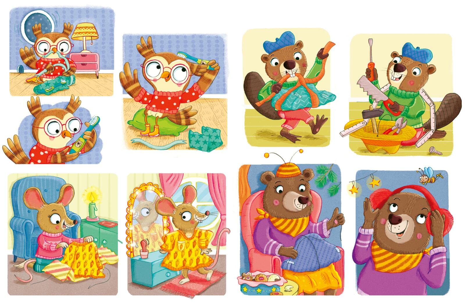 Und auch für Rudi und an sich selbst verteilt er ein Geschenk. Rudi bekommt ein Astronautenkostüm, Benni ein Duftedings, die Eule einen Gefieder-Striegler, der Biber einen Korb für sein Holzwerkzeug, die Bärin Ruheohren und die Maus ein Karottenkleid. Alle Tiere treffen sich auf der Weihnachtsparty auf der Waldlichtung und sind glücklich. Benni freut sich, dass er das mit dem Geschenkeverteilen so gut hinbekommen hat. Doch welches Päckchen war eigentlich wohl für wen gedacht?