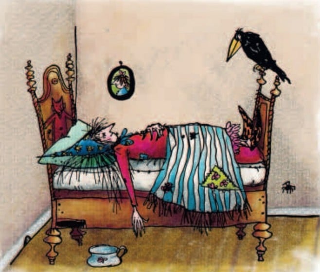 Es war einmal eine kleine Hexe. Die war erst einhundertsiebenundzwanzig Jahre alt. Sie wohnte in einem Hexenhaus, das einsam in einem tiefen Wald stand. Es hatte ein windschiefes Dach, einen krummen Schornstein und klapprige Fensterläden. Die Hexe besaß einen Raben namens Abraxas, der sprechen konnte und sehr weise war. Etwa sechs Stunden am Tag versuchte sie das Hexen zu üben, denn das ist keine einfache Sache. Und die kleine Hexe hatte einen großen Wunsch: So gern würde sie auf dem Blocksberg mit den anderen Hexen feiern und tanzen. Aber sie wäre noch zu klein, sagen die großen Hexen.