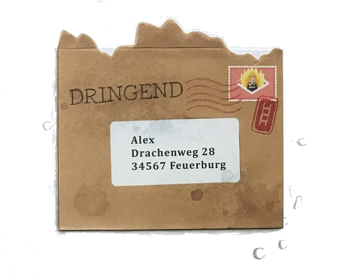 Einen Drachen, einen richtigen Drachen findet Alex im Keller des Hauses. Das passt super, denn er wollte schon immer einen Drachen haben. Aber damit er bleibt, muss Alex wissen, wie man einen Drachen so hält. Er könnte ja zum Beispiel das Haus in Brand stecken. Man weiß ja nie, ob und wann er Feuer spuckt. Da weiß bestimmt die Feuerwehr Rat. An die schreibt Alex einen Brief.
