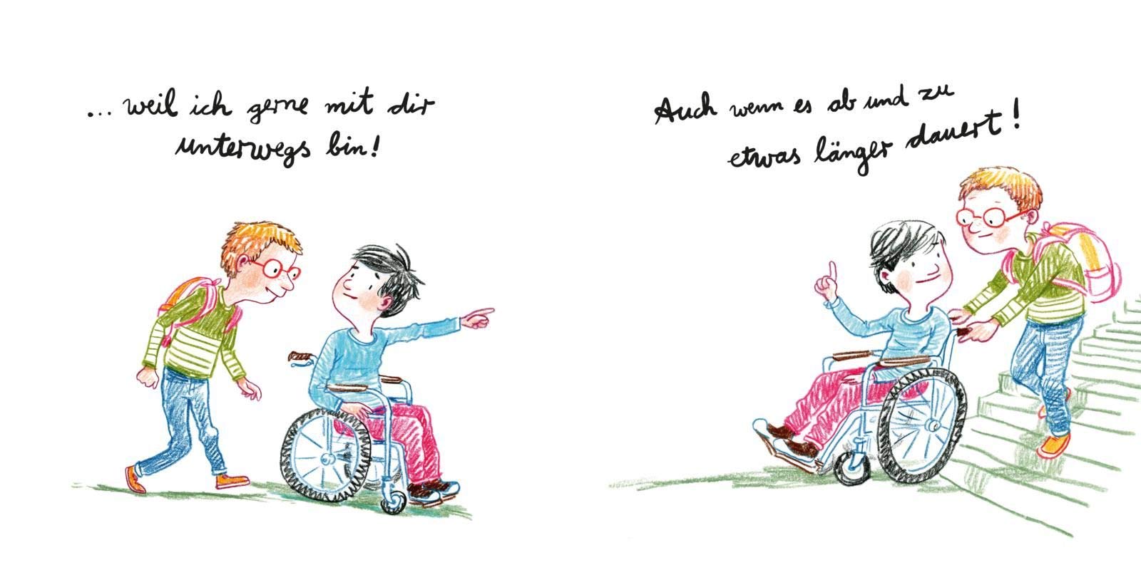 Grandios in den Illustrationen aufgegriffen. Jede Seite ist mit der darauffolgenden Seite verbunden. Ob gemeinsame Interessen, Wünsche und Vorlieben oder gegenseitige Unterstützung, Anerkennung und Stärke – Freundschaften geben Rückhalt, schaffen Geborgenheit, spenden Trost und erweitern den Horizont. Facettenreich. Bewegend. Einfühlsam. Kunterbunt.