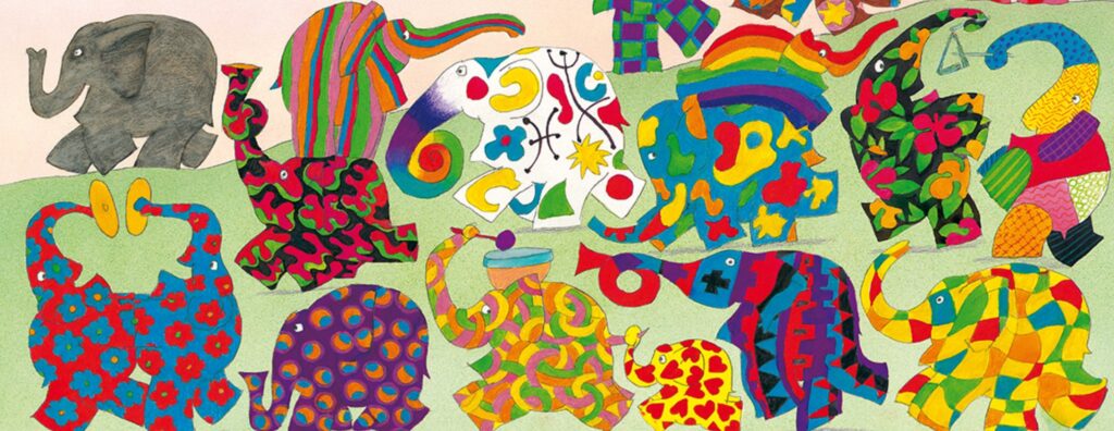 Bunt statt grau? „Elmar“, der Elefant ist farbig kariert. Wenn er auftaucht, wird es fröhlich bunt! Bereits 1989 erschien das erste Abenteuer über den lustigen Elefanten. Die Geschichten des englischen Autors und Illustrators David McKee über Elmar sind mittlerweile auf der ganzen Welt bekannt und beliebt. Lernt ihn kennen!