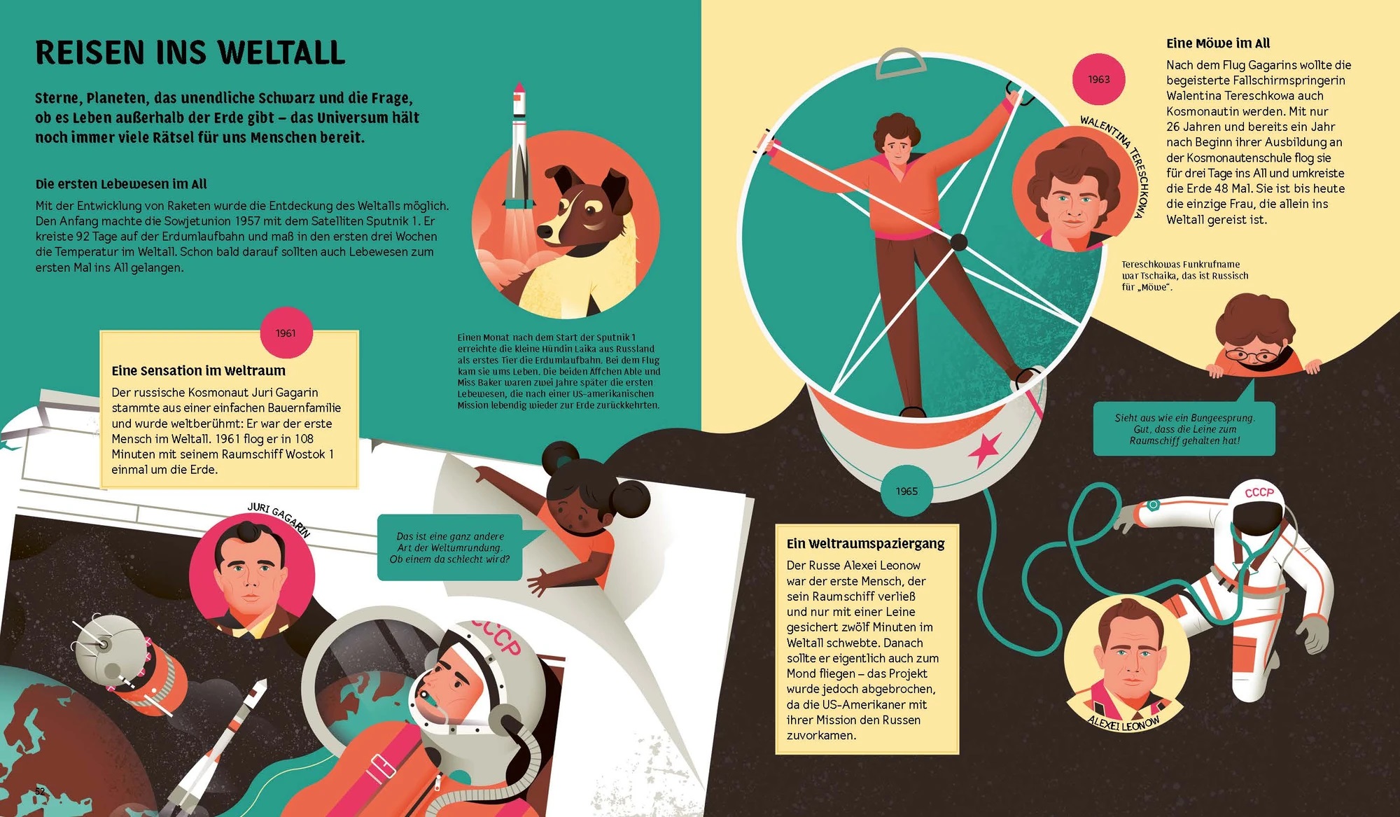 Zeitlich von der Wiege der Menschheit bis zu unserer heutigen Zeit aufgebaut. Mit kurzen und verständlichen Texten, die von tollen und farbenfrohen Illustrationen optisch wunderbar unterstützt werden. Ein zusätzliches Highlight ist die Begleitung des Lesens durch zwei Kinder (Emma und Louis), die Fragen stellen, Anmerkungen machen und auf Besonderheiten hinweisen. Ebenfalls wird deutlich, dass die Entdeckungen und Forschungsreisen nimmt immer wegweisend gewesen sind und positive Folgen hatten. Rundum aufschlussreich, spannend und erstaunlich.