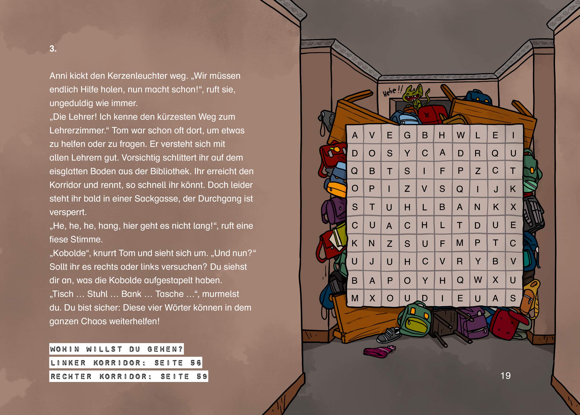 Für „Escape School: Das Zauberbuch“* ist Kombinationsgabe und Spürsinn gefragt! Verschlüsselte Nachrichten, Suchbilder oder verzwickte Aufgaben: Am Ende eines jeden Kapitels muss ein Rätsel gelöst werden, um Schritt für Schritt dem Ziel näher zu kommen. Manchmal ist es schon ein wenig knifflig. Für den Fall der Fälle gibt es natürlich auch Tipps sowie Lösungshilfen. Mal ein etwas anderes Grundkonzept für den Selbstlesestart. Ein fesselndes Escape-Abenteuer, welches lesen, spielen und rätseln mit hohem Bildanteil unterhaltsam verbindet. Interaktiv, spannend und abwechslungsreich.