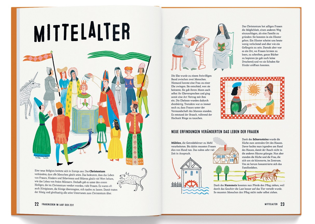Die Geschichte der Menschheit von der Steinzeit bis zum 21. Jahrhundert aus der Perspektive einer durchschnittlichen Frau präsentiert Katarzyna Radziwiłł in „Frauenleben im Lauf der Zeit“*. Eine Zeitreise von unserer heutigen Zeit zurückgehend bis 30.000 v. Chr., deren Fokus auf der Entwicklung des weiblichen Lebens liegt. Es widmet sich der Präsenz von Frauen in ganz unterschiedlichen Lebensbereichen und ihren Lebensbedingungen in den verschiedensten Epochen sowie dem Prozess der Emanzipation in Bereichen wie Wissenschaft, Kunst, Gesellschaft, Arbeit, Religion, Kultur, Sport oder Politik. Wundervoll von kunterbunt-vielfältigen Illustrationen begleitet, die die Fakten, Informationen und Anekdoten optisch eindrucksvoll ergänzen. Ein umfassender Überblick. Ein bewusster Zugang. Eine unbedingte Empfehlung. Eine grundsätzliche Inspiration.