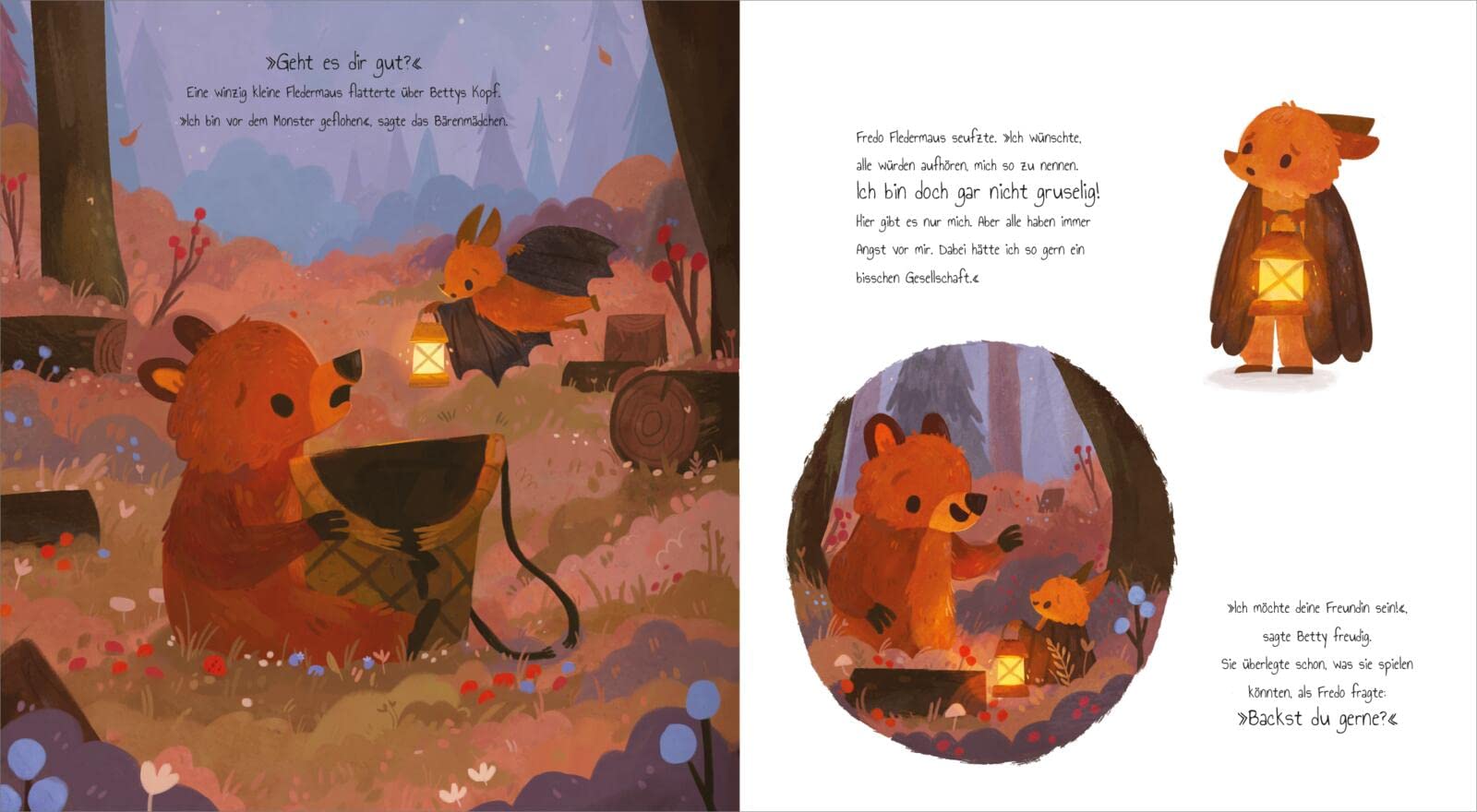 Eines schönen Herbsttages sammeln die Tiere des Waldes Vorräte für den Winter. Geschäftig füllen die Mäuse, die Eichhörnchen, der Fuchs, die Kaninchen und Betty Bär die Körbe mit Äpfeln, Nüssen und Beeren. Betty ist so emsig, dass sie sich den größten Korb schnappt und tief in den Wald hineinläuft. Sie pflückt mehr und mehr Beeren und läuft tiefer und tiefer in den Wald hinein. Bis sie auf einmal vor der knorrigen, alten Eiche steht. Magisch zieht sie der Essenduft, der dort aus den Fenstern strömt, an. Ob hier wirklich ein gruseliges Ungeheuer wohnt?