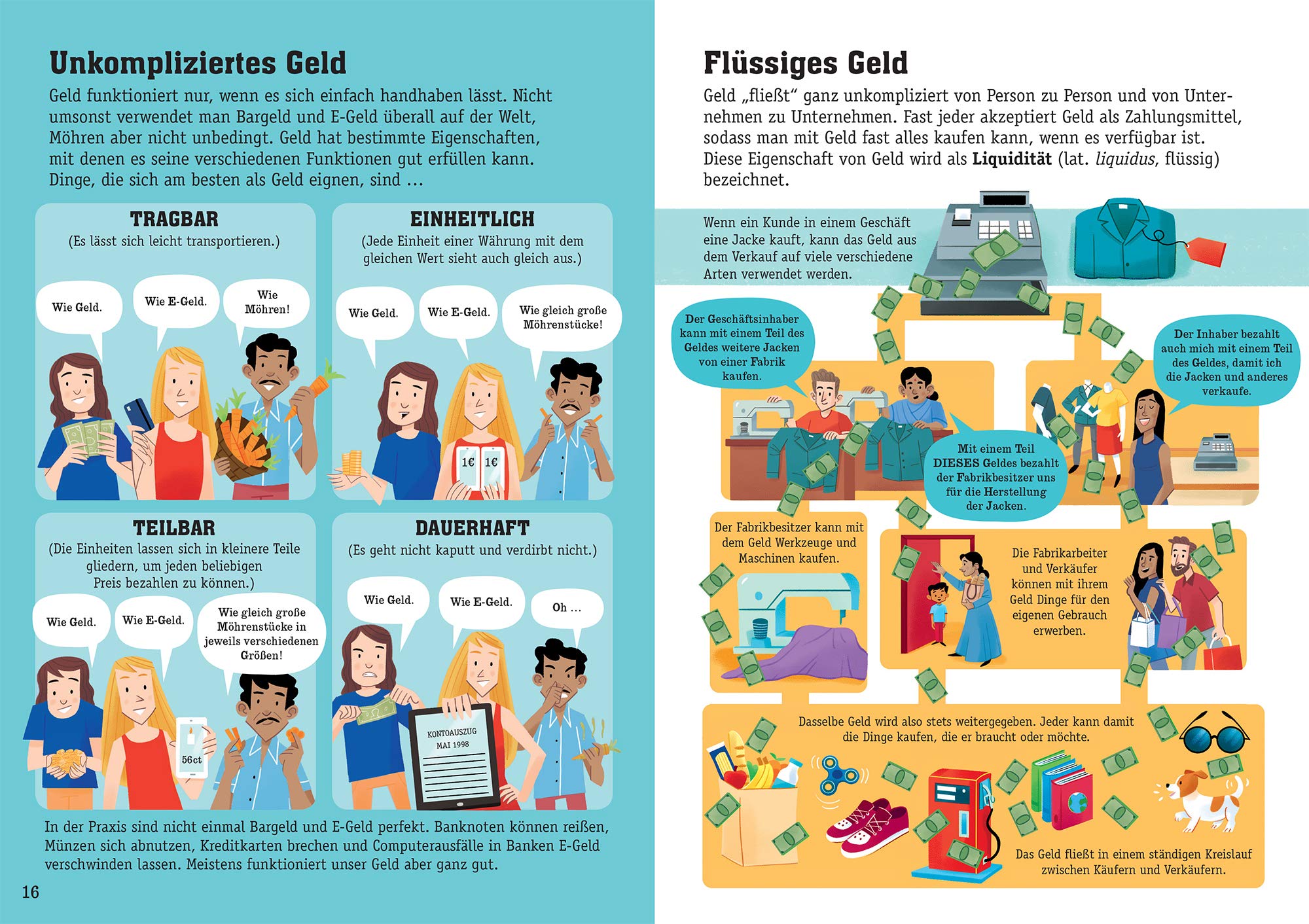 Ansprechend mit Cartoons, Comicstrips und Diagrammen visuell bekräftigend. Mit anschließendem vertiefendem Worterklärungsglossar. Nicht nur graue Theorie, sondern ein detaillierter Leitfaden mit praktischen Tipps rund um die Grundlagen der Geldwirtschaft und Geldpolitik – von Bankkonten über Geldanlage bis hin zu Staatsausgaben. Für Erwachsene und Kinder gleichermaßen aufschlussreich und lesenswert.