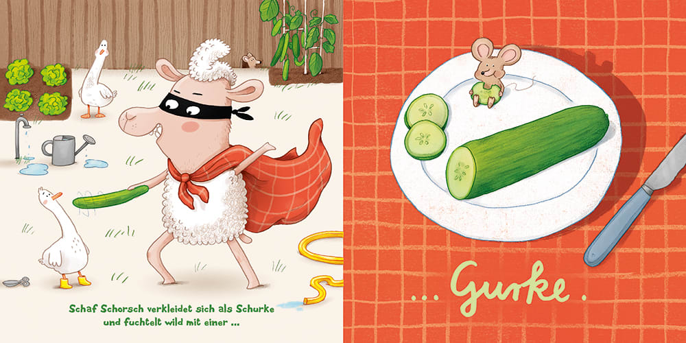 Eine Portion knackige Reime, eine Prise aromatischen Wortwitz und eine Löffelspitze herzhaften Quatsch vermengt mit lustigen Illustrationen – das ist das großartige Rezept von Cornelia Boese und Ina Hattenhauer, die „Lecker-Schmecker-Reime“* zu einem köstlichen Lesegenuss für die Allerkleinsten machen.