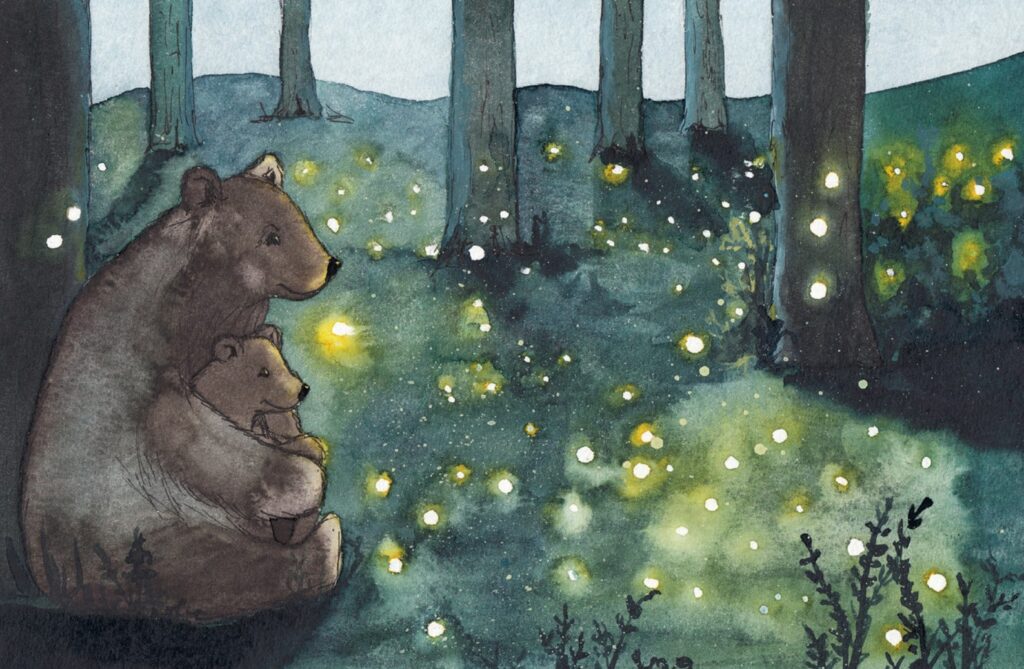 Der kleine Bär, weiß nicht so recht. Jetzt rausgehen bei dem Regen? Er kann sich nicht vorstellen, bei diesem Wetter draußen Spaß zu haben. Aber Papa Bär hat tolle Ideen: Sie können wie die Frösche im Regen hüpfen und über Pfützen springen. Oder laut singen und im Regen tanzen. Pilze, wachsen gut, wenn es geregnet hat. Sie könnten welche sammeln. Und abends, wenn die Sonne untergegangen ist, machen sie ein Lagerfeuer und essen Stockbrot…