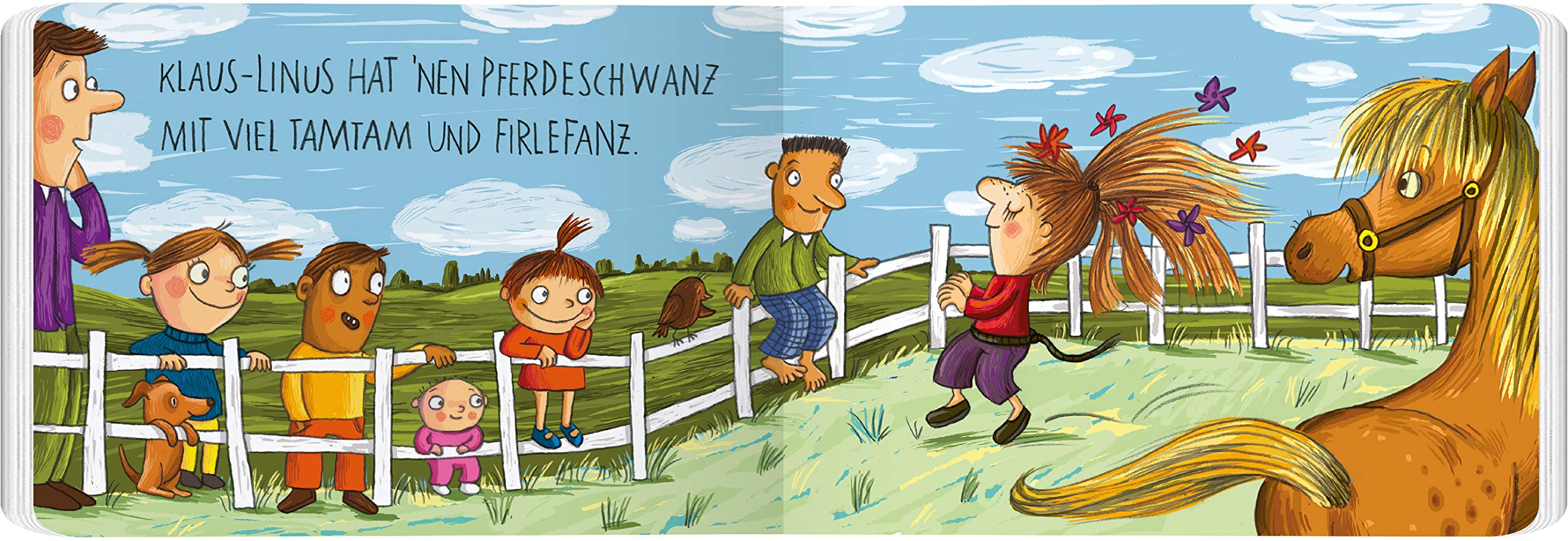 Zum Kringeln: Wunderbar, detailverliebt, kreativ, spritzig, fantasievoll mit unglaublich viel Dynamik und Sprachwitz zeigt Daniela Kulot in ihrem Pappbilderbuch „Locken, Pony, Pferdeschwanz und jede Menge Firlefanz“* metaphorisch und spielerisch anhand von Haaren sowie Frisuren wie kunterbunt, vielfältig, heterogen unser Alltag und gleichzeitig wie einzigartig ein jeder von uns ist. Haargenau auf den Punkt. Verfasst in kurzen Reimen mit farbenfroh-lustigen Bildern unterlegt. Nicht nur für die Allerkleinsten ein Spaß, Groß wird beim Vorlesen und gemeinsamen Anschauen ebenfalls prächtig unterhalten. Ganz und gar, mit Haut und Haar – voller Liebe, Herz und Leben!