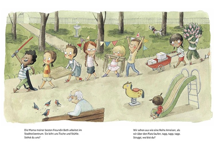 Meine Freunde das Glück und ich: Diverse Kinder transportieren Sachen für das Nachbarschaftsfest
