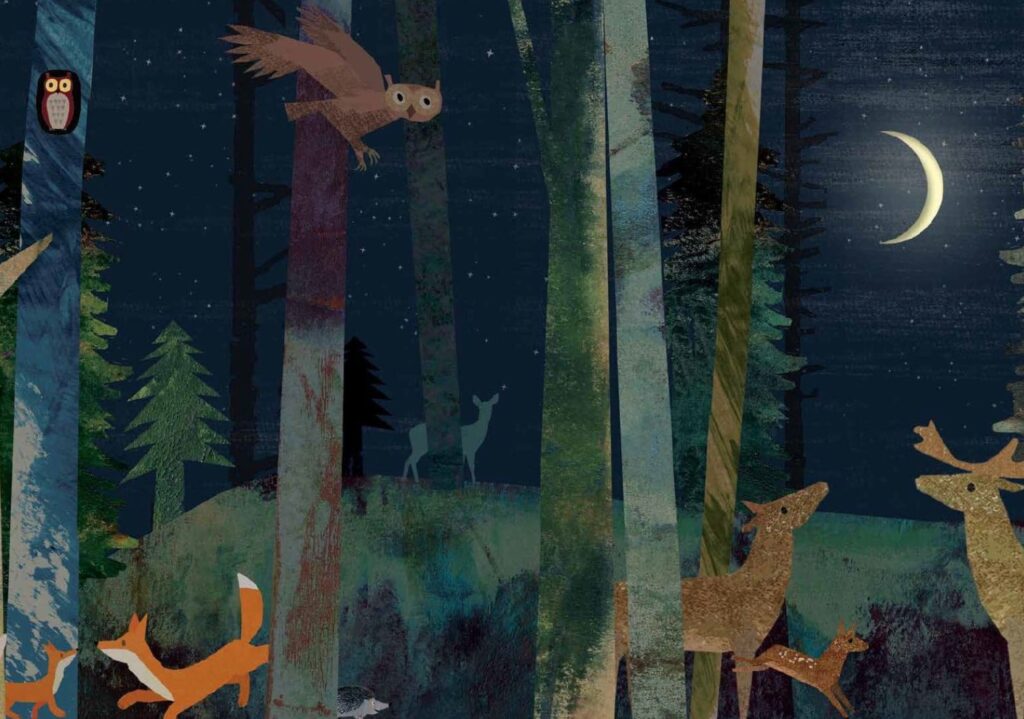 Mit ihren Kinderbüchern nimmt sich Autorin und Illustratorin Britta Teckentrup auf eine ganz besonders zauberhafte Weise den Wundern der Natur an. Phänomene und Geheimnisse um uns herum, die zum Staunen und Entdecken einladen. In „Mond: Eine Reise durch die Nacht“* begleiten kleine Leser und Leserinnen den Erdtrabanten auf seiner nächtlichen Bahn. Collageartige – fast wie Scherenschnitte – Illustrationen in nächtlich stimmungsvollen Farben ziehen magisch in den Bann und bieten faszinierende Einblicke in wunderschöne Naturschauspiele. Poetisch, ruhig, leise. Sanft wie das Leuchten des Mondes.