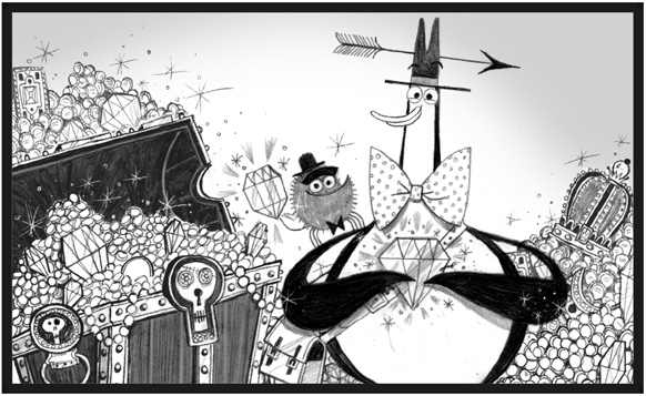Mister Pinguin ist ein Pinguin. Er ist schwarz-weiß, hat einen kleinen Schnabel und zwei flossige Flügel. Wenn er vorwärts watschelt, dann wackelt sein Hinterteil genauso hin und her, wie das Hinterteil eines Pinguins eben wackelt. Aber etwas ist ungewöhnlich an ihm: Er ist ein Abenteurer. Unschwer erkennbar an seinem Hut, seiner Lupe und seiner Umhängetasche, in der er ein Fischstäbchensandwich als Proviant herumträgt. Was ihm jetzt noch fehlt, ist ein echtes Abenteuer…
