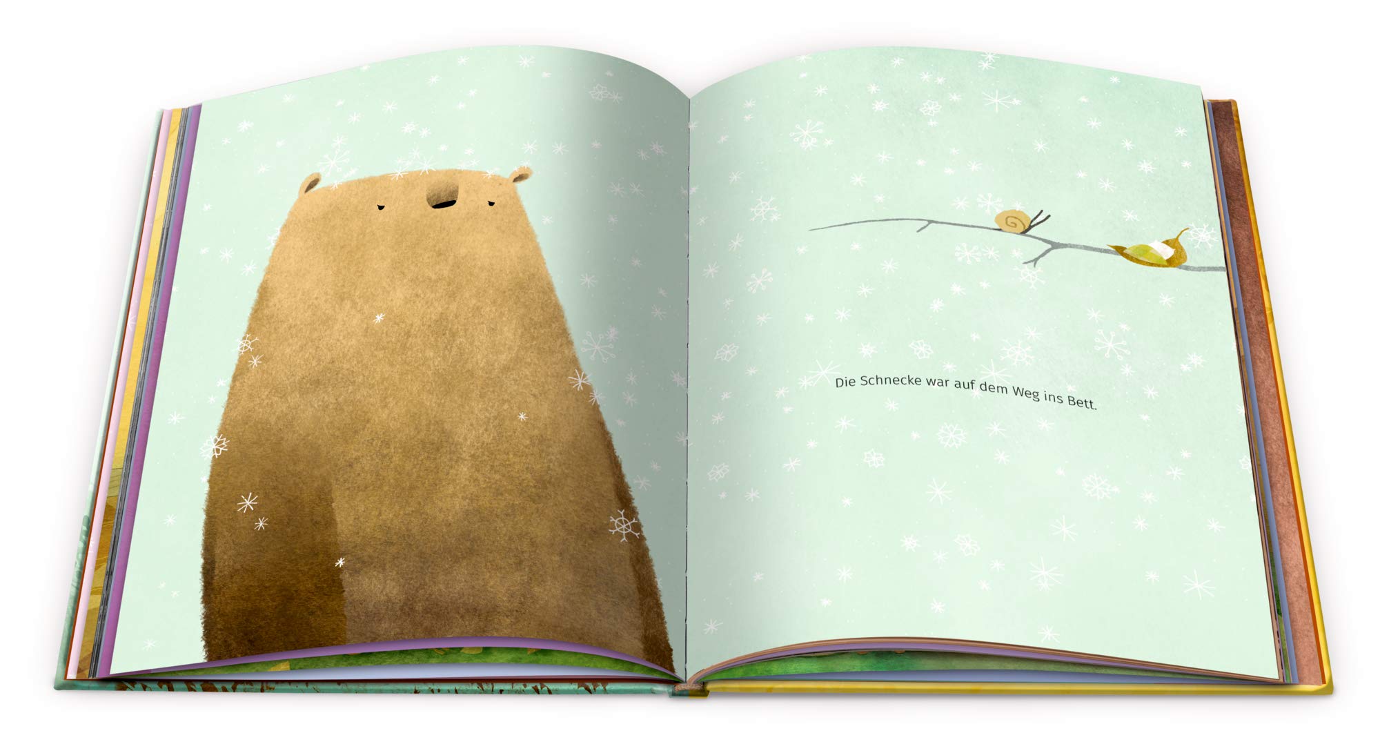 In „Nein, ich bin nicht müde! / Ja, ich will ins Bett!“* erzählt Oksana Bula eine charmant-winterliche Geschichte aus zwei verschiedenen Perspektiven. Die Sicht des Bären lernt ihr in „Nein, ich bin nicht müde!“ kennen. Wird das Buch gewendet, ist in „Ja, ich will ins Bett!“ die Geschichte vom Wisent zu lesen. Und in der Mitte des Wendebilderbuches finden beide Erzählstränge zusammen.