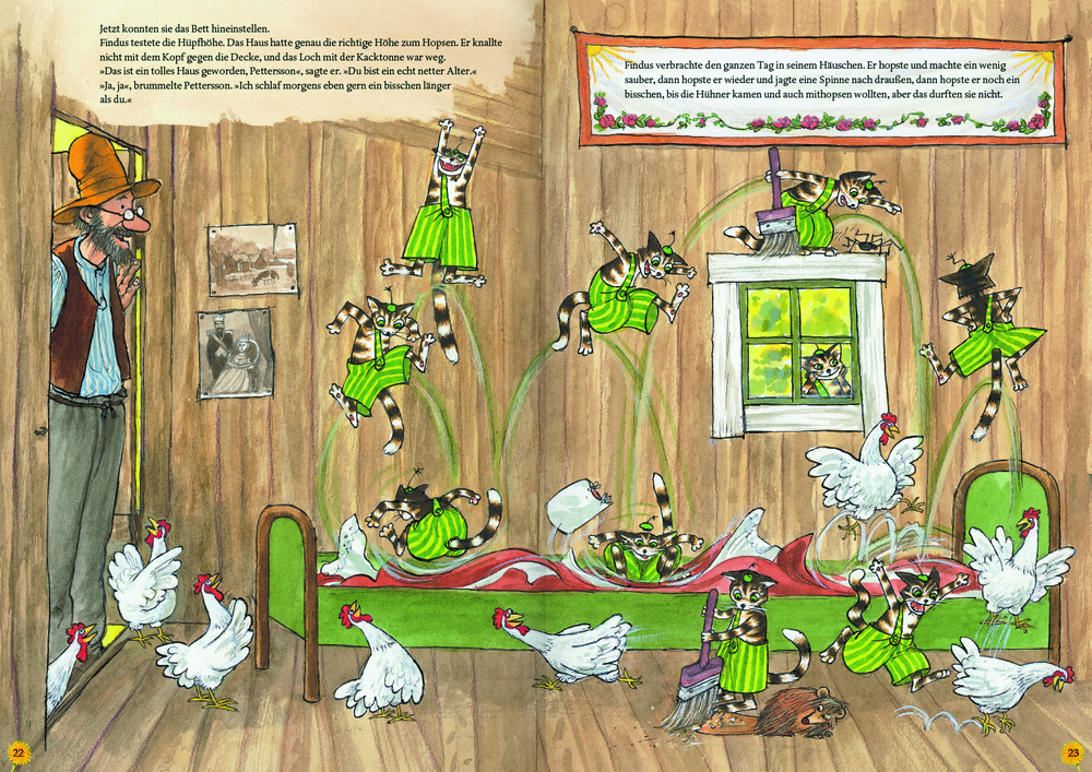 Meine beiden Jungs lieben Petterson und den kleinen Kater Findus am liebsten bauen sie im Wohnzimmer mit den Decken und Kissen eine Höhle und verstecken sich dort ( so wie Findus sich versteckt)