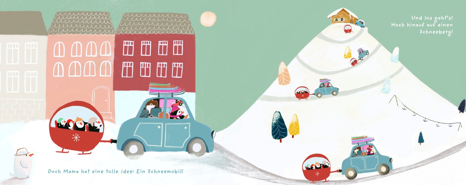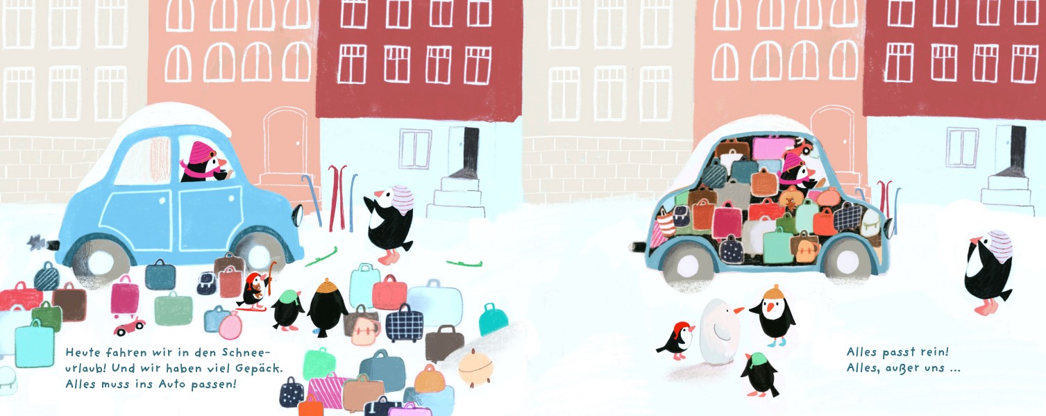 Zusammen mit den klar konturierten Figuren und der winterlich-farbharmonischen bildlichen Gestaltung laden Geschichte sowie Illustrationen in Kombination nicht nur zum Suchen und Entdecken ein, sondern regen gleichzeitig die Fantasie und zum Erzählen an. Und ganz nebenbei gibt es eine Menge an Inspiration, was man alles so im Winterurlaub machen kann. Turbulente Urlaubsgeschichte mit großem Spaß- und Schmunzelfaktor.