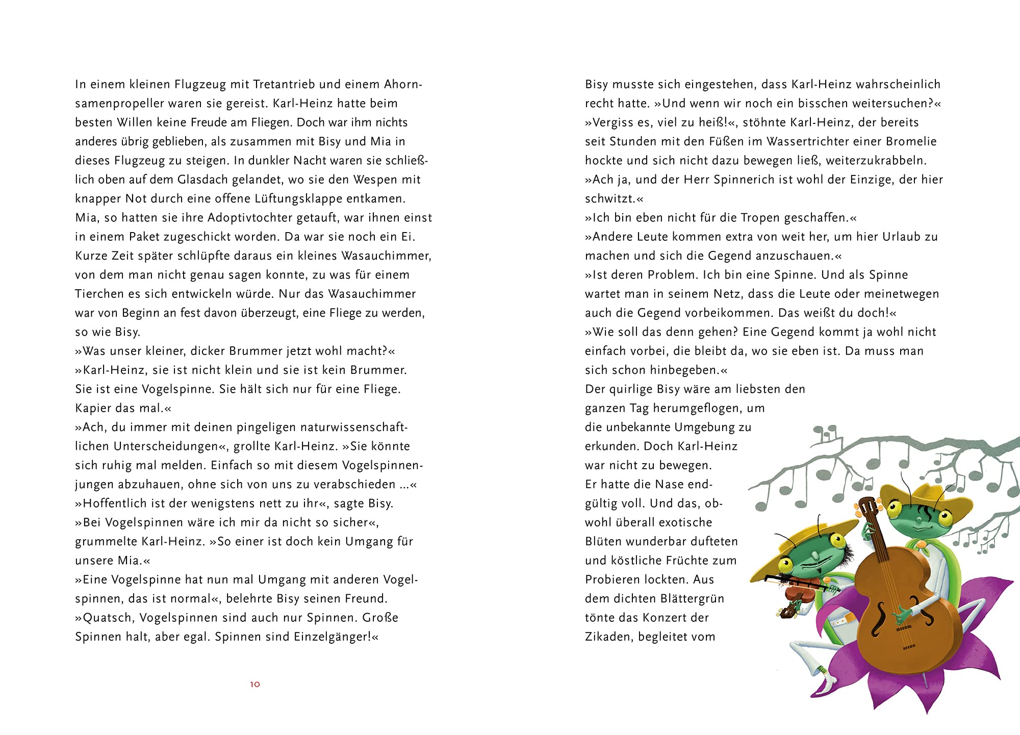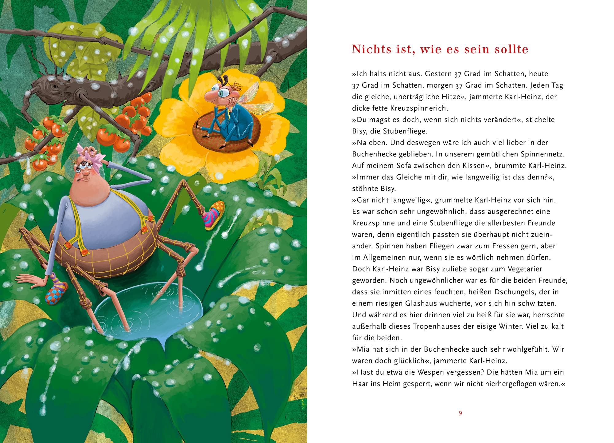 Kreuzspinne Karl-Heinz und Fliege Bisy schwitzen inmitten des feucht-heißen Dschungels eines riesigen Glashauses. Draußen herrscht Winter, und es ist viel zu kalt. Bisy wäre am liebsten den ganzen Tag herumgeflogen, um die Umgebung zu erkunden. Doch Karl-Heinz ist nicht zu bewegen. Er hat nicht die Absicht das Netz zu verlassen, bevor der Winter vorüber ist. Aber dann flattert ein Werbeprospekt den beiden vor die Nase, vom exklusiven Ferienclub Insektario.