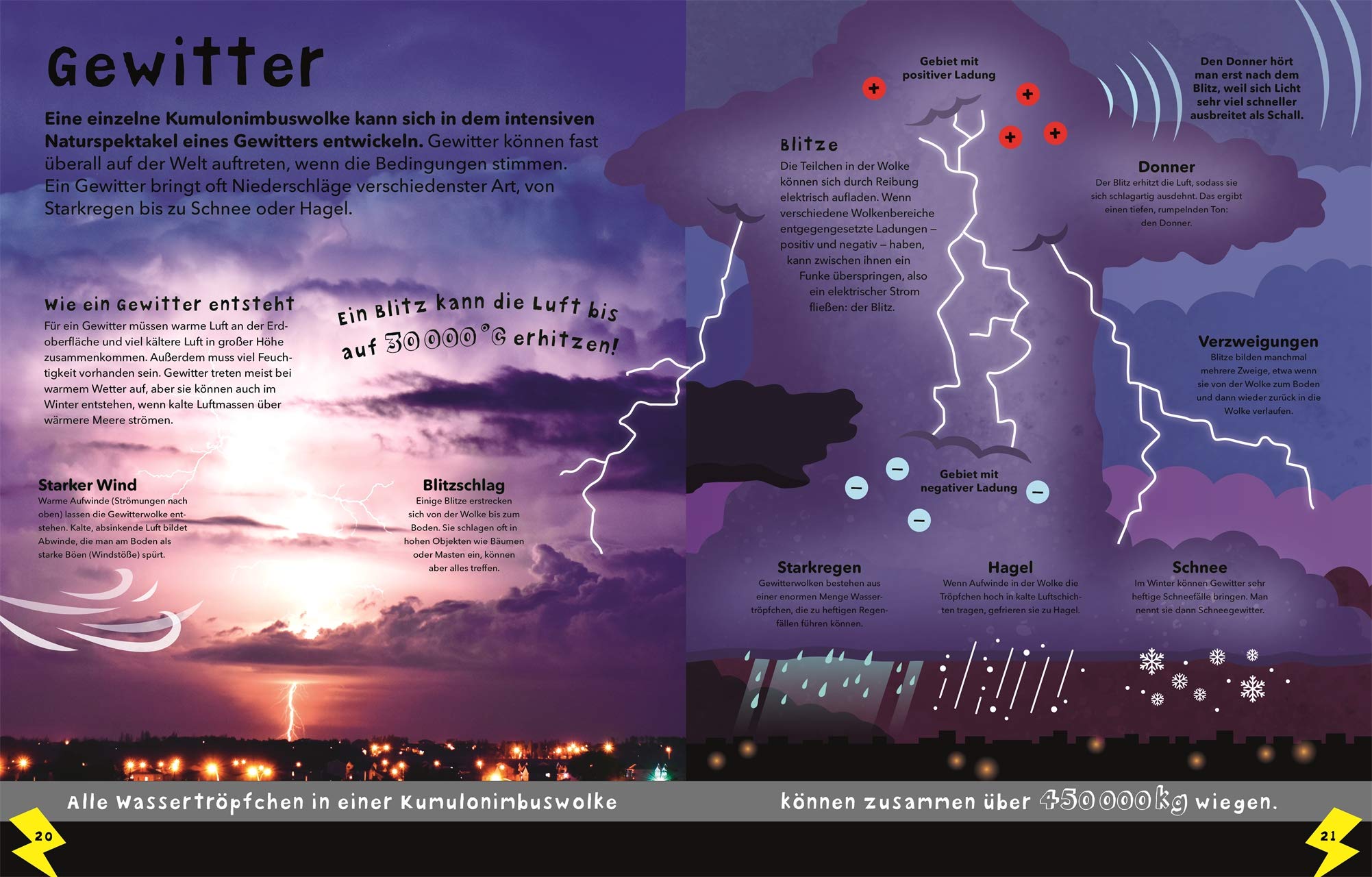 Das Wetter ist voller erstaunlicher Phänomene: der Wechsel der Jahreszeiten, Regenbögen oder Gewitter – „So ein Wetter!“* beleuchtet die verschiedensten Aspekte, erzählt von eindrucksvollen Naturerscheinungen und stellt komplizierte Zusammenhänge anschaulich wie verständlich dar. Angefangen von der Entstehung des Wetters auf unserer Erde über die Wettervorhersage bis hin zum Klimawandel. Mit kurzen, informativen Texten, kunterbunt-detailreichen Bildern und Fotos sowie kompaktem Wissen bietet es einen umfangreichen Überblick. Wunderbar, um tief in die Atmosphäre einzutauchen.