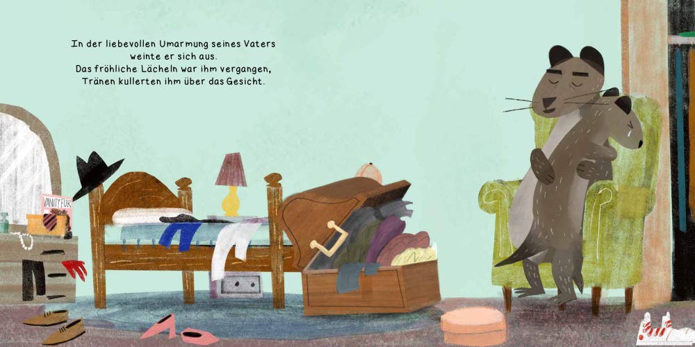 Zuhause nimmt ihn sein Vater liebevoll in den Arm. Doch als Theo seine geliebten Sachen in eine Kiste stopft, hält ihn sein Vater auf. Theo ist wunderbar und perfekt, so wie er ist. Als Theo das hört, lächelt er und legt jeden seiner Schätze wieder an seinen Platz zurück. Und dann suchen sie gemeinsam die verrücktesten Kleider zusammen, die Theo besitzt. Sich ändern? Das muss Theo für niemanden…