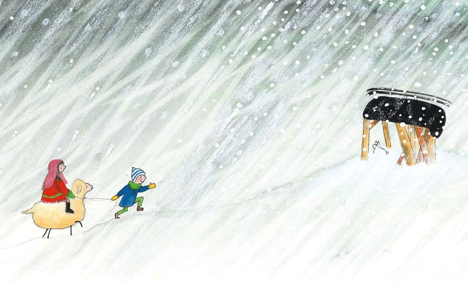 Wenn es draußen früh dunkel wird, spielt Mia oft die Maria. Und ihr kleiner Bruder muss dann immer Josef sein. Und immer, wenn sie Maria und Josef sind, machen sie sich auf den Weg nach Bethlehem. Nur sie beide und das Eselchen. Da sie aber kein Eselchen haben, darf ein Schaf mitspielen. So ziehen die beiden weit, sehr weit, durch die dunkle Nacht. Immer weiter und weiter.