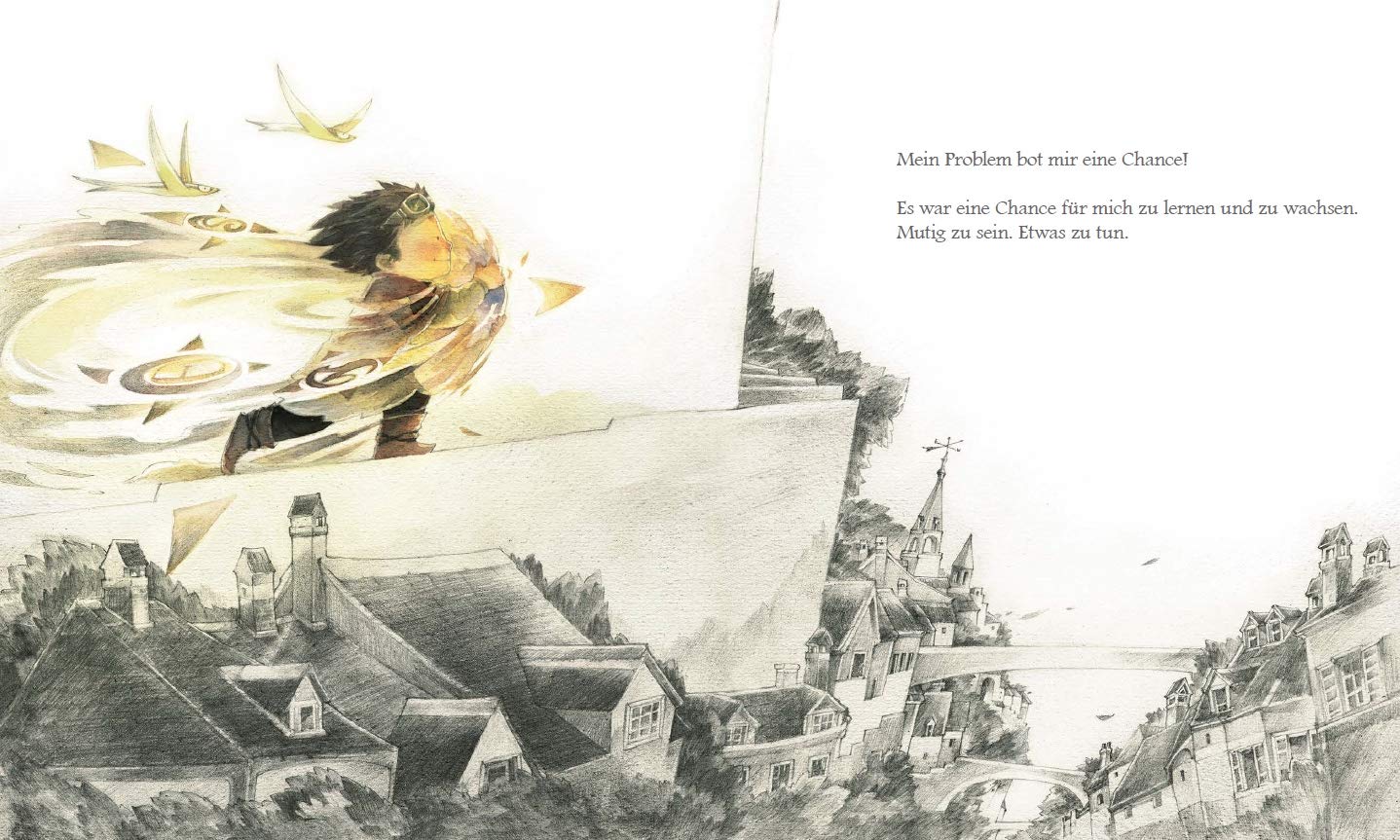 Vielleicht ist das Problem ja größer oder grusliger, als es eigentlich ist? Auge in Auge gegenüberstehend ist da etwas zu Entdecken. Ein Geheimnis. Etwas Schönes. Es zeigt, wie wichtig es ist, hinzuschauen. Es bietet eine Chance. Mutig zu sein. Etwas zu tun. Zu lernen. Zu wachsen. Jedes Problem birgt eine Chance für etwas Gutes…